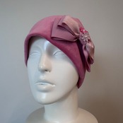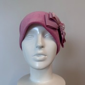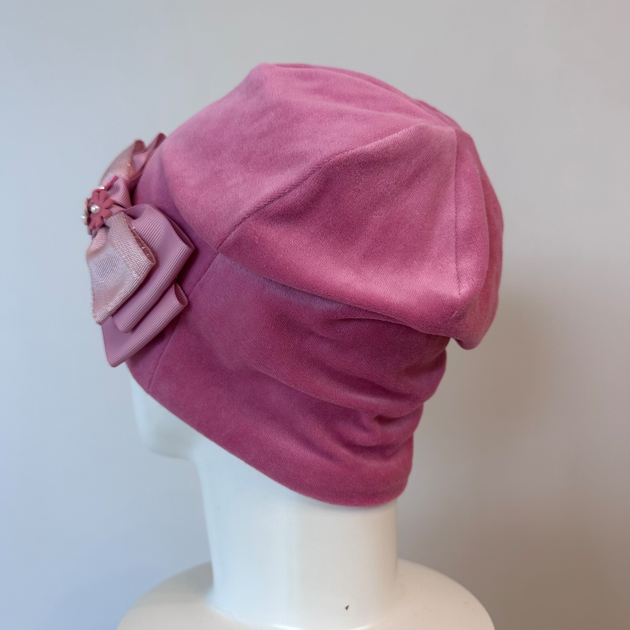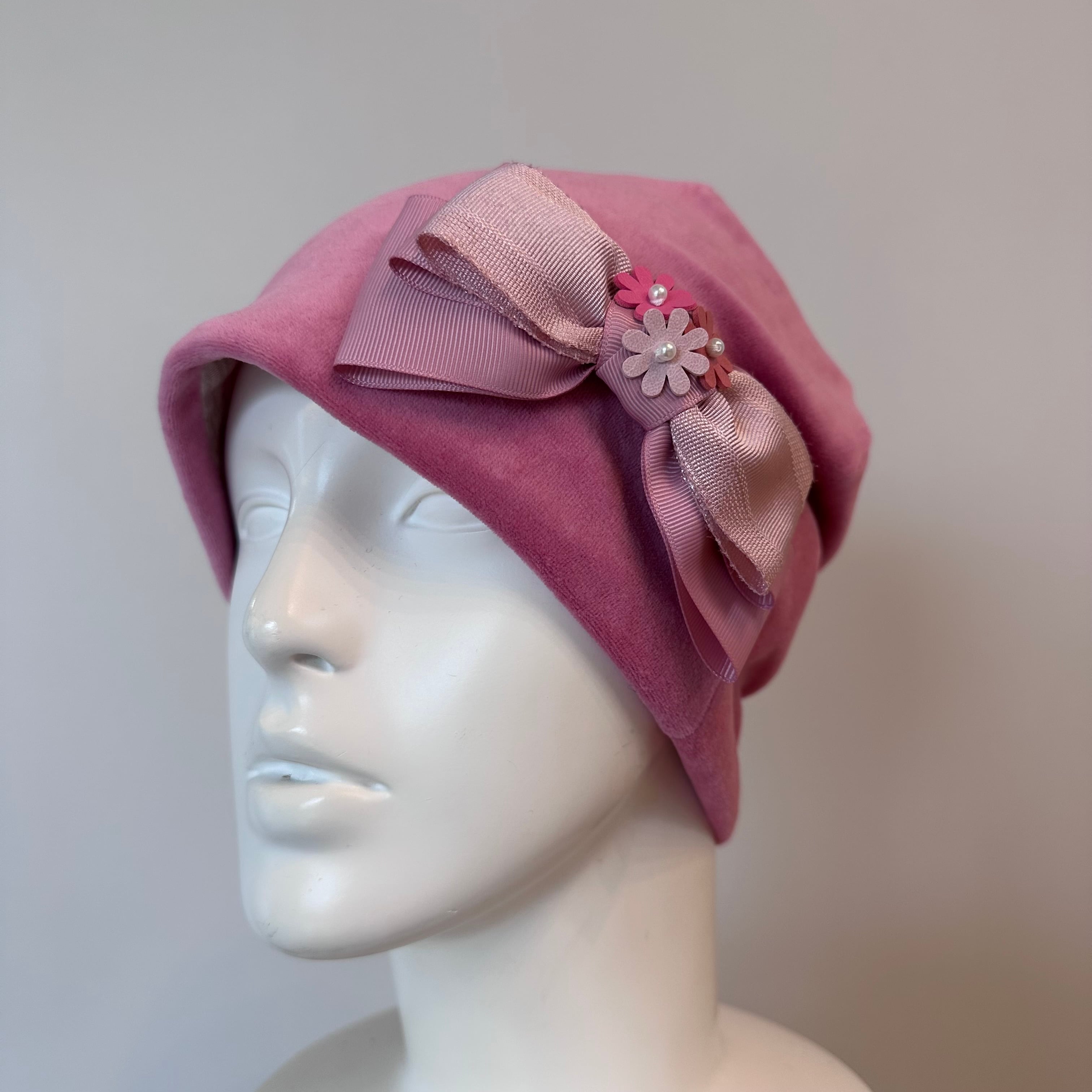 そのお帽子にお花付きグログランリボンを付けた可愛いデザインです。