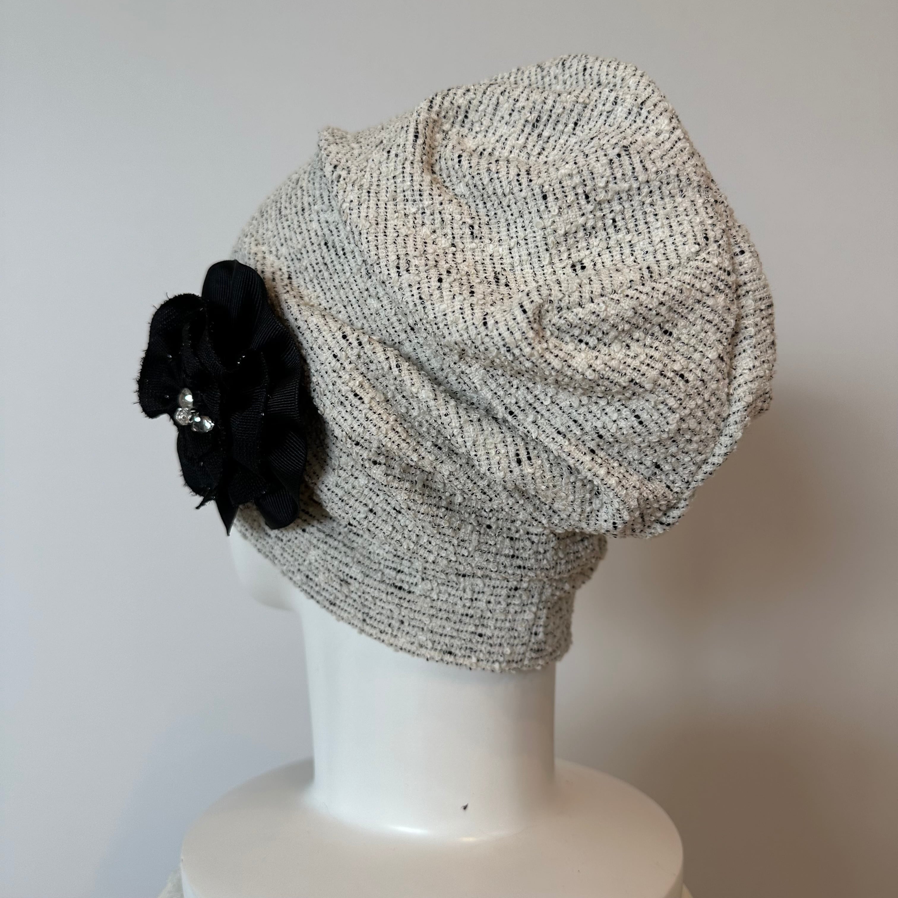 そのお帽子にリボンコサージュを付けた可愛いデザインです。