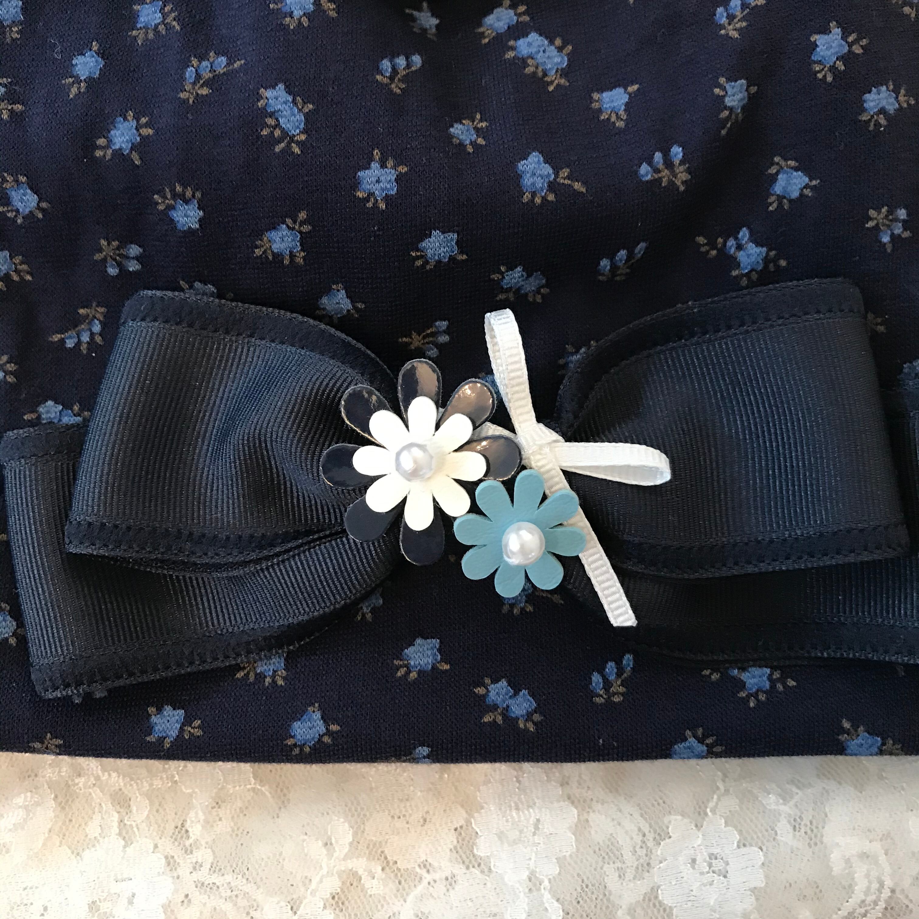 お花と縁取りリボンのケア帽子 小花柄ネイビー
