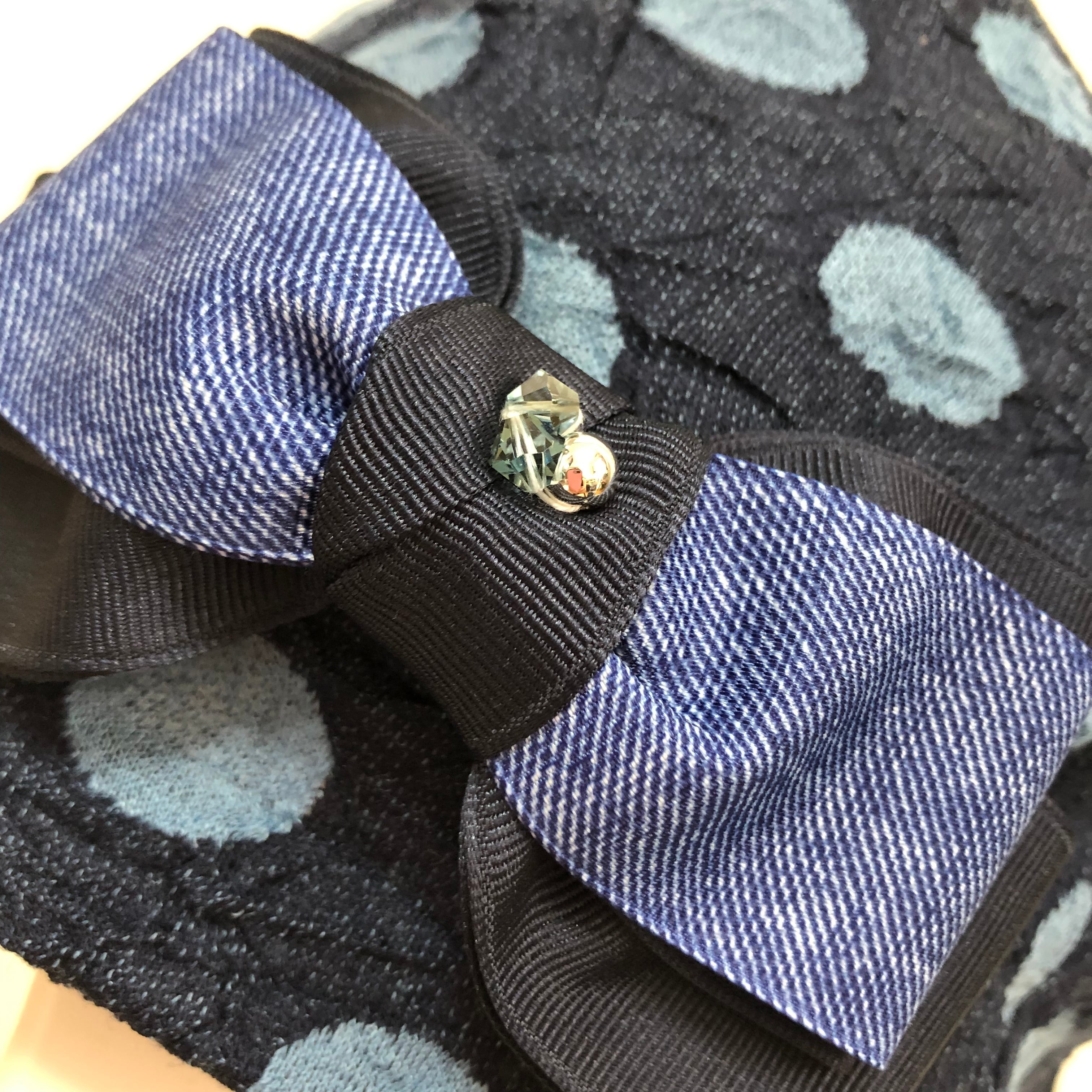水玉生地のケア帽子 デニムリボン