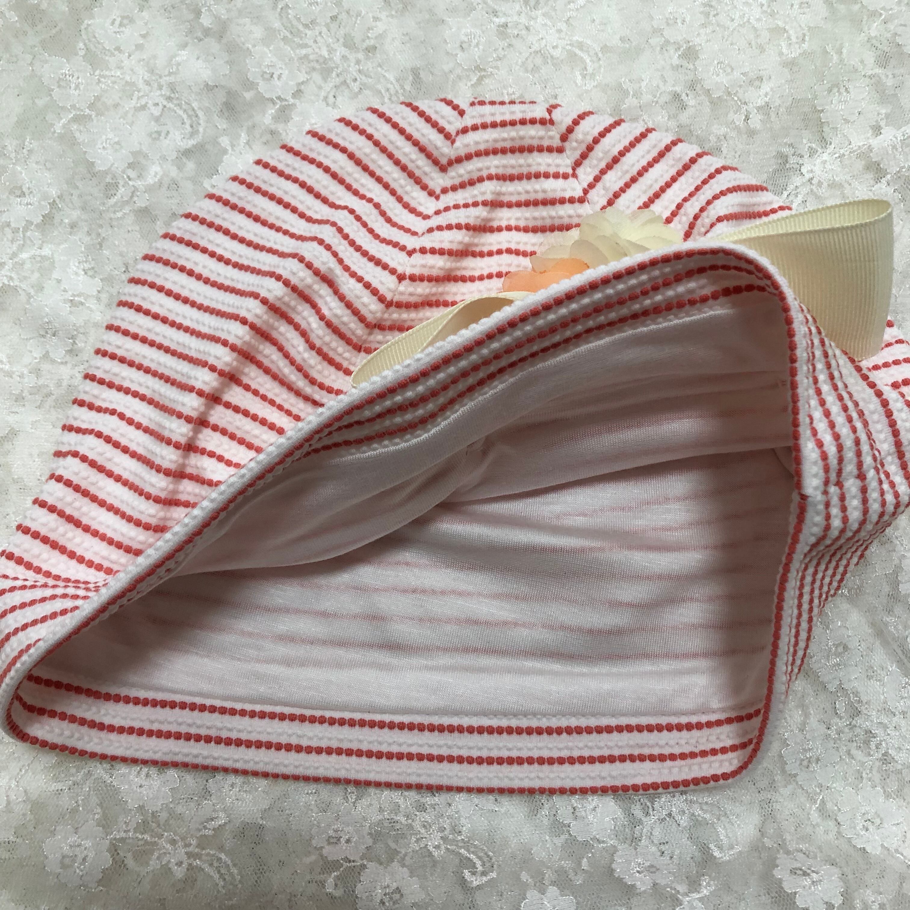 シホォンのお花付きリボンのケア帽子 ボーダー