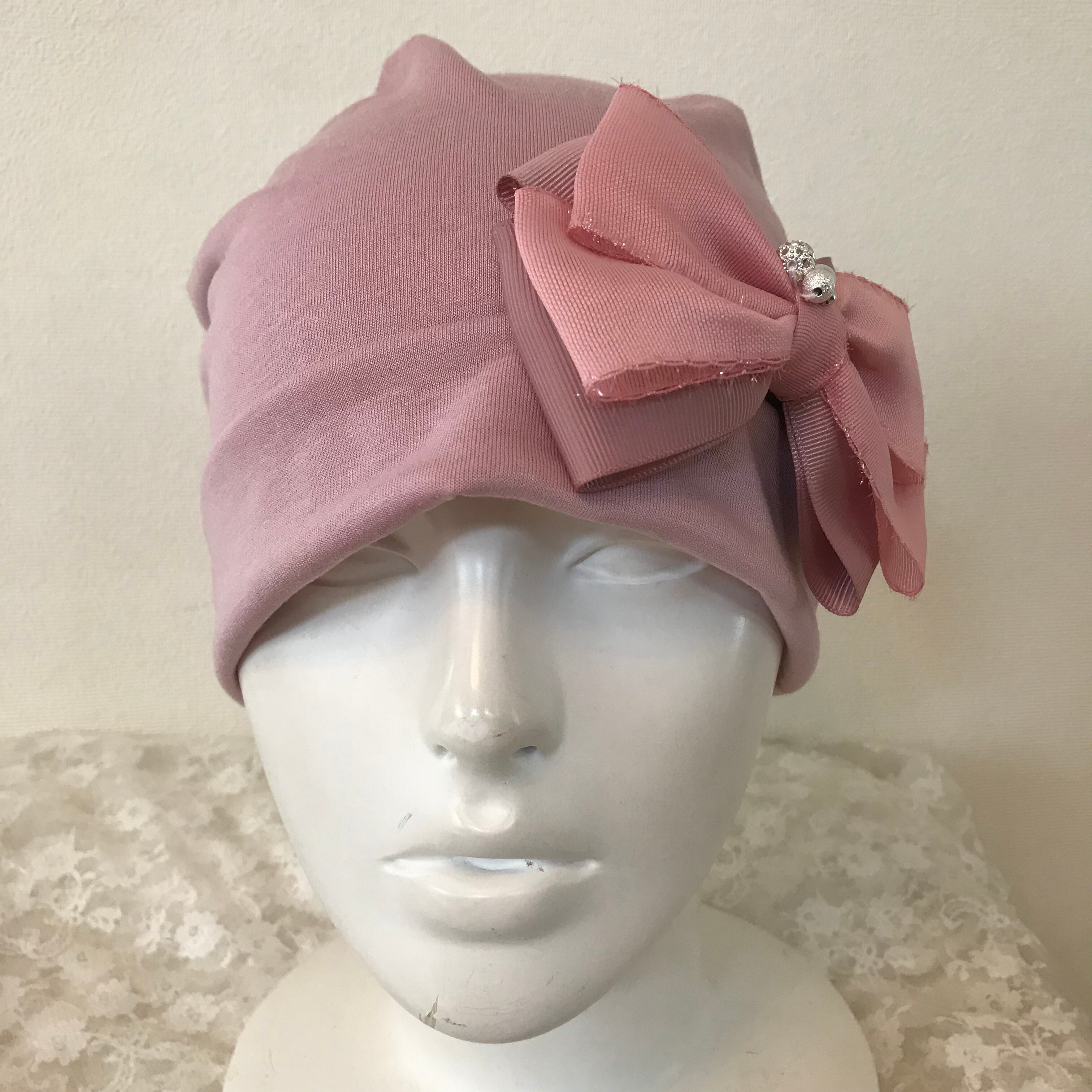 肌触りの良い、伸縮性のあるお生地で作ったお帽子に、キラキラボールとパール付きキラキラフリンジリボンとグログランリボンを付けた素敵なデザインです。