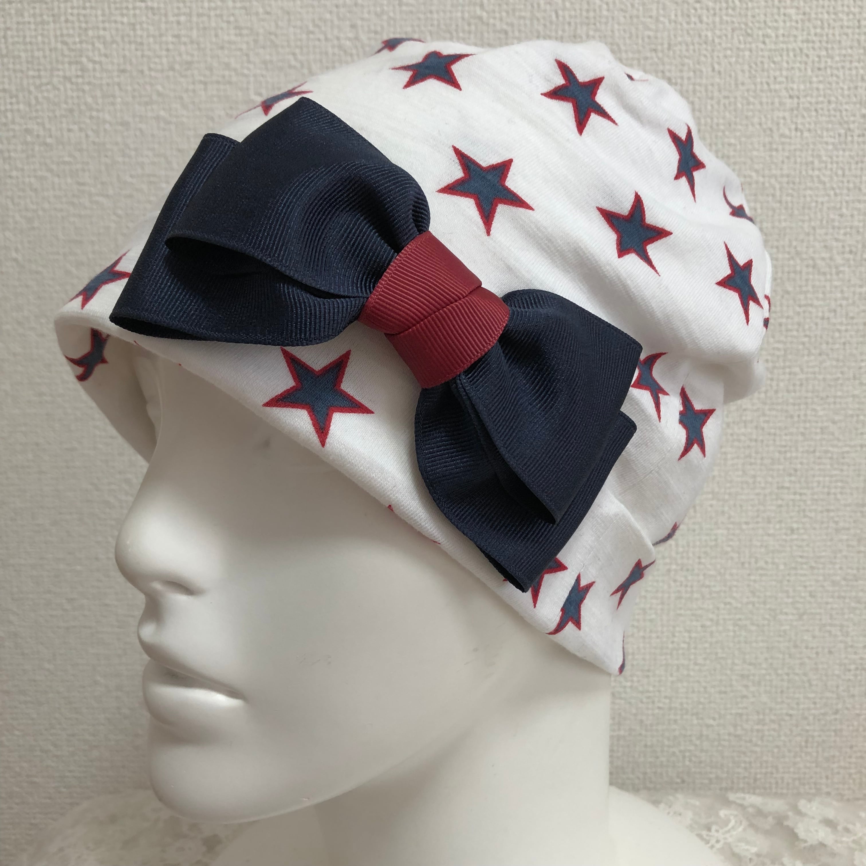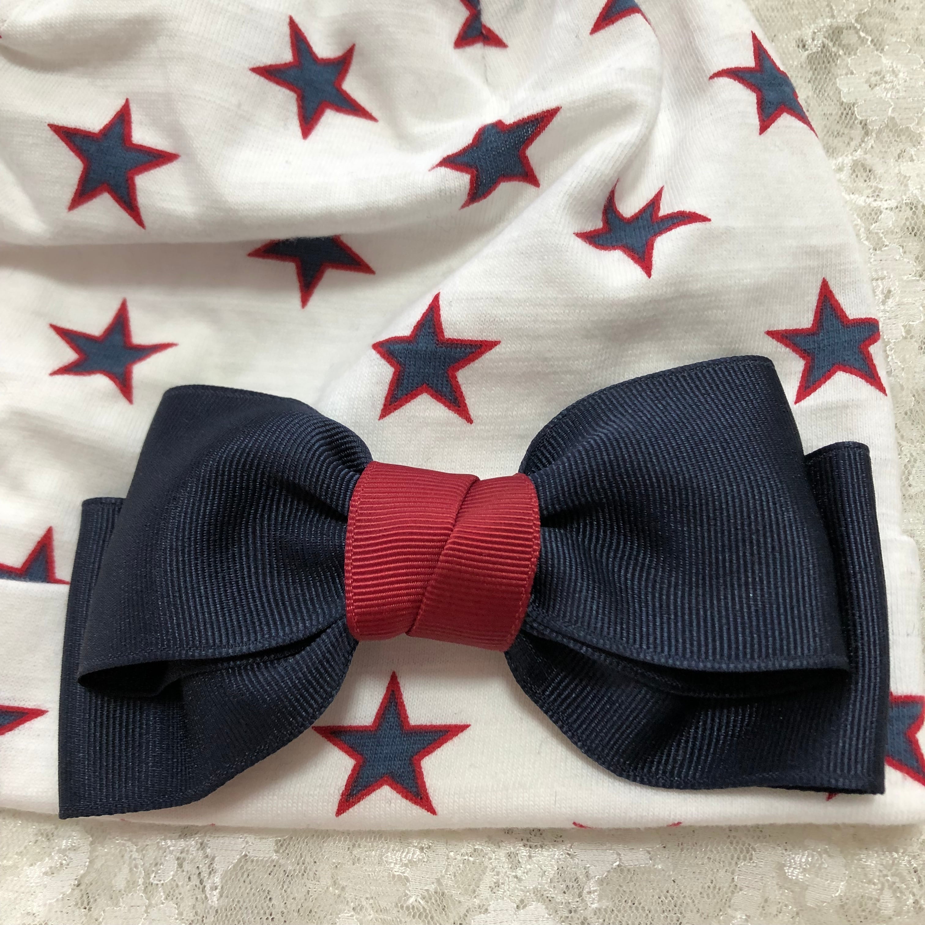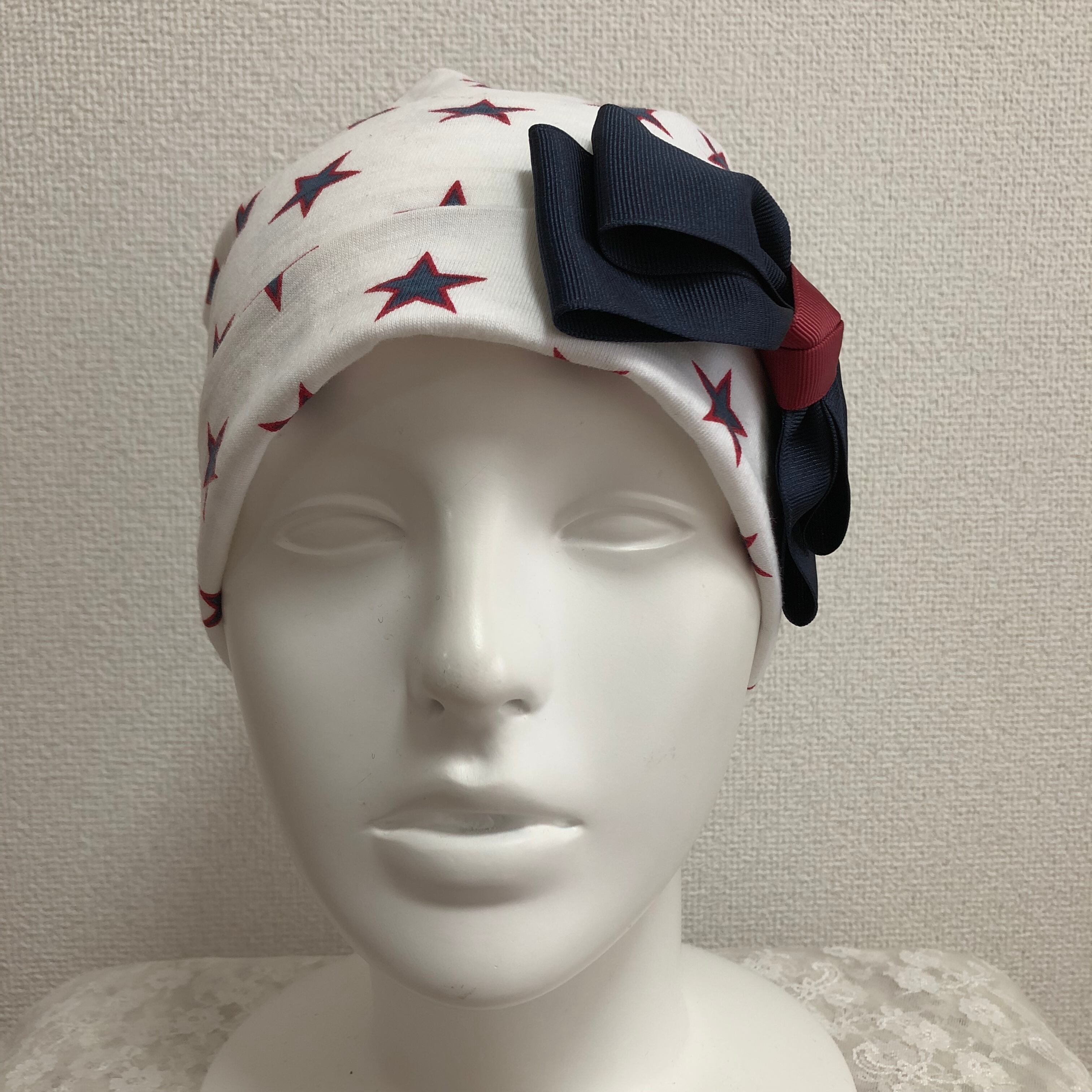 肌触りの良い、伸縮性のあるお生地で作ったお帽子に、シンプルリボンを付けた素敵なデザインです。
