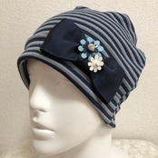 おリボンとお花のケア帽子 ネイビー✖︎グレーボーダー