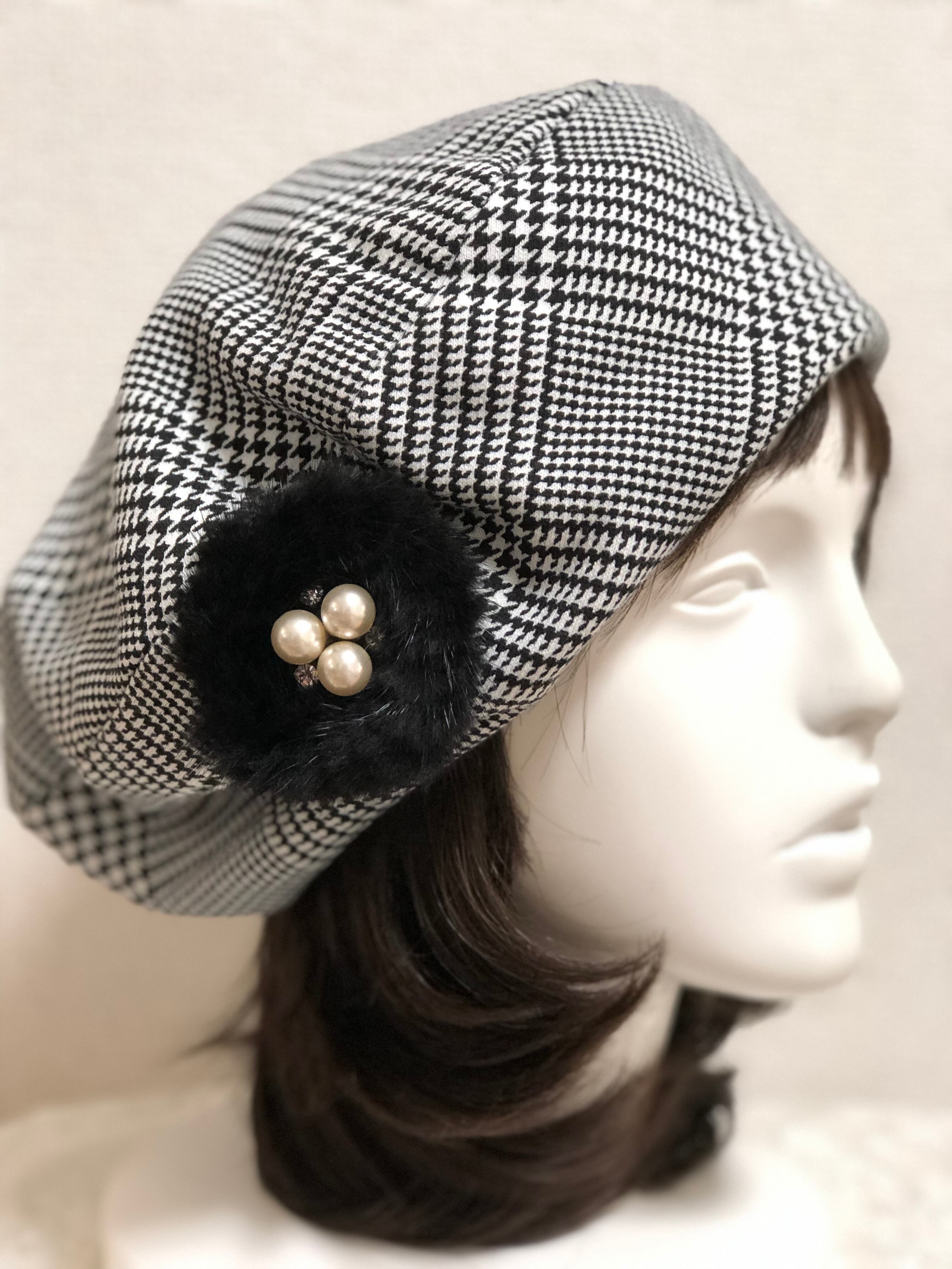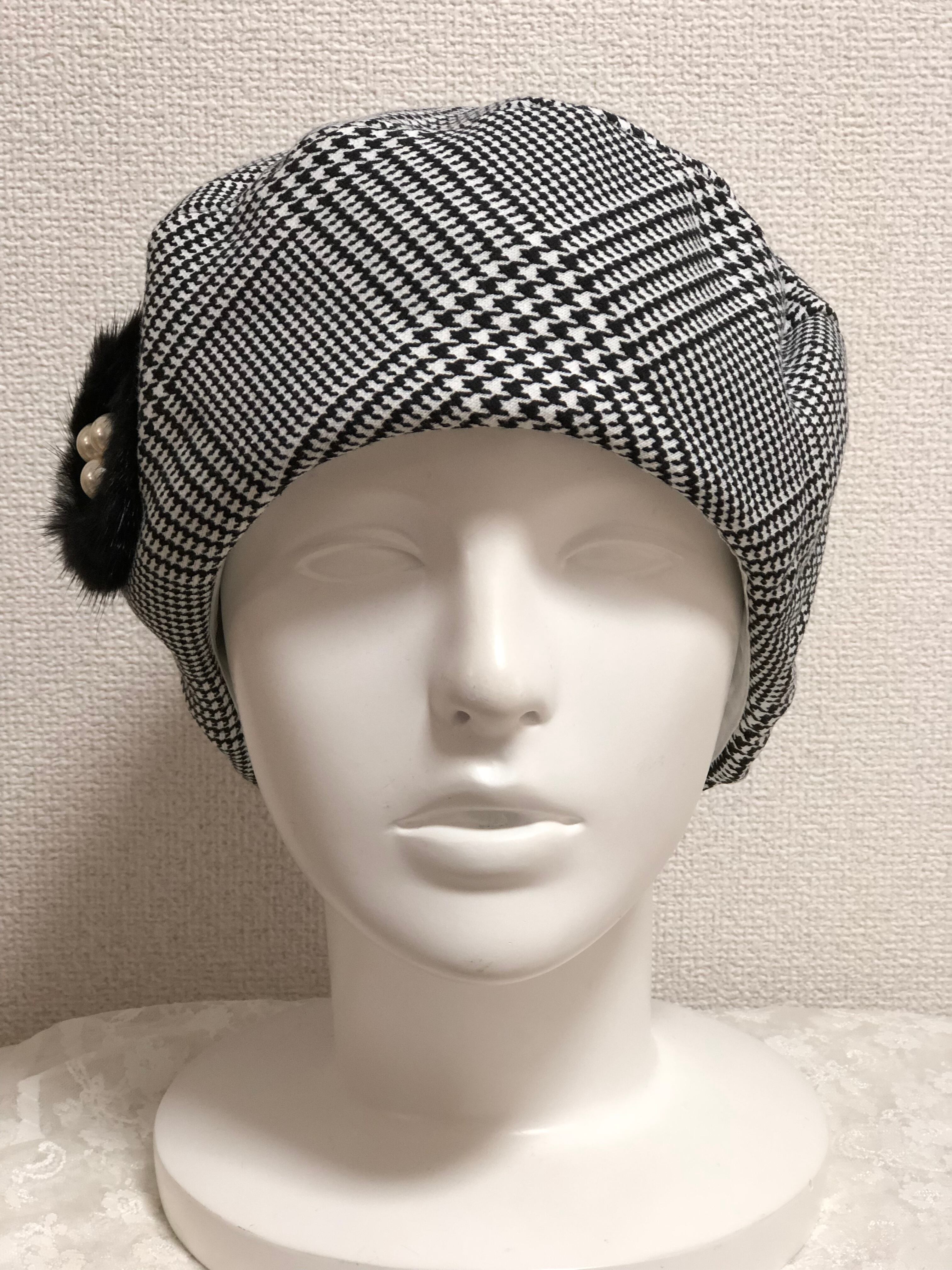 そのお帽子に取り外し可能なマグネットファーブローチを付けた素敵なデザインです。