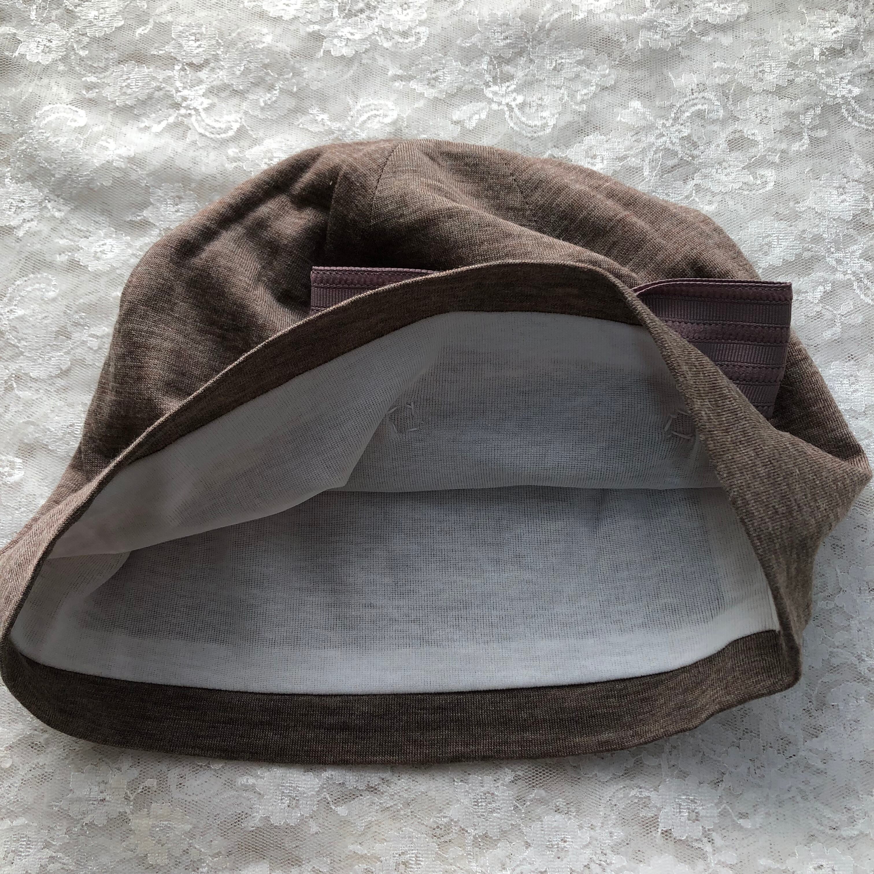 ウール生地のケア帽子 キラキラビジュー付きインターストライプ