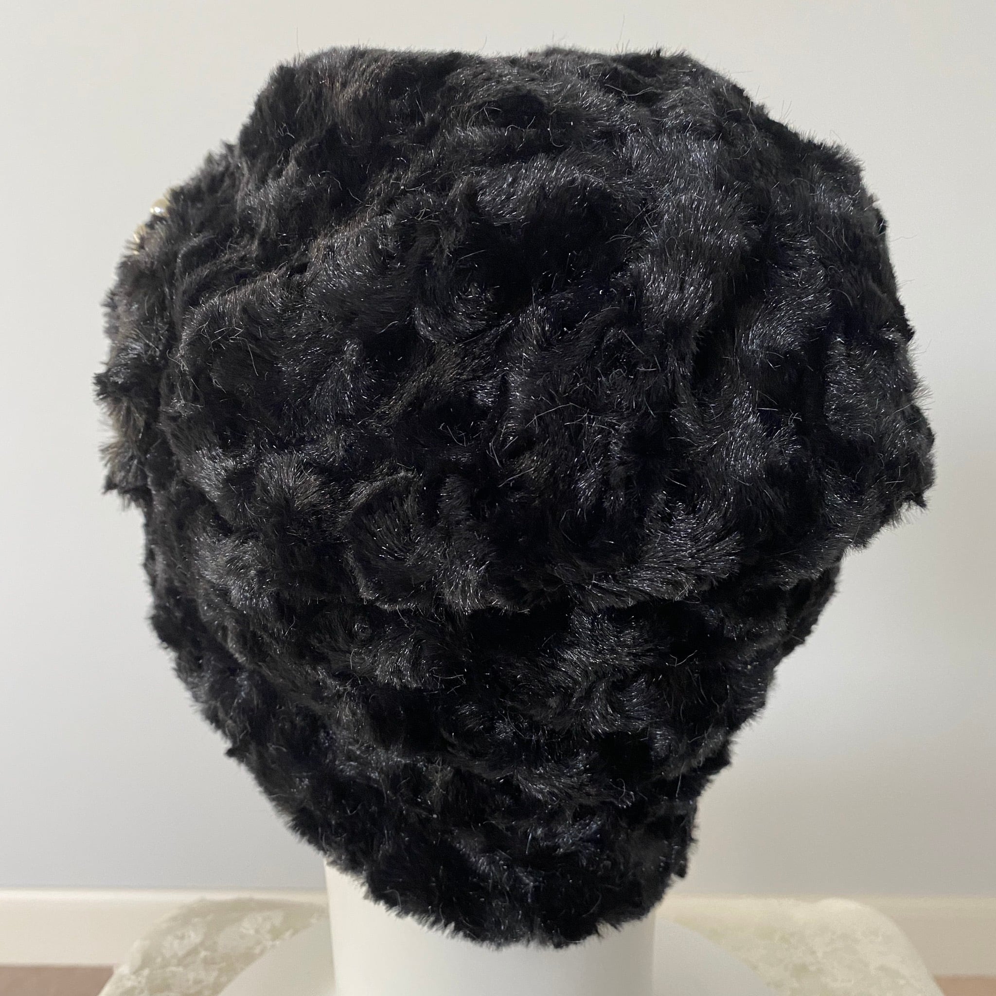 フワフワモコモコ♡トルネードファーのケア帽子 黒