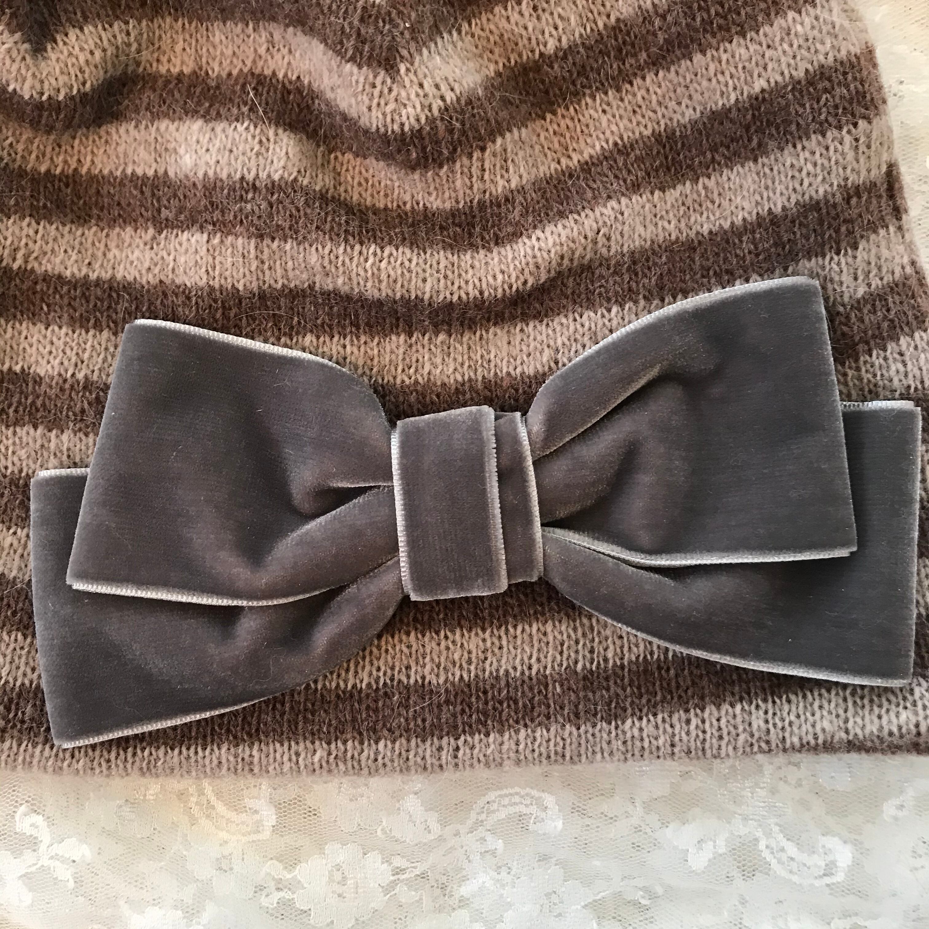 ベルベットリボンのケア帽子 ウールニットブラウン系