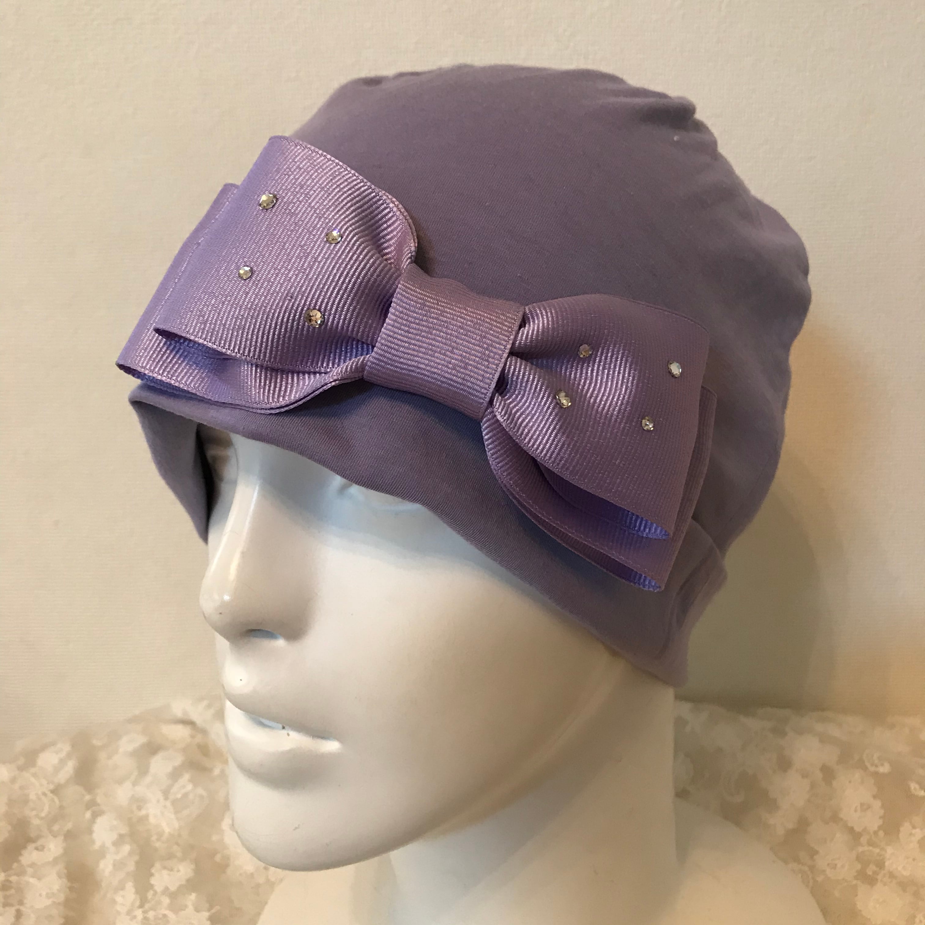 スワロフスキーとリボンのケア帽子 紫