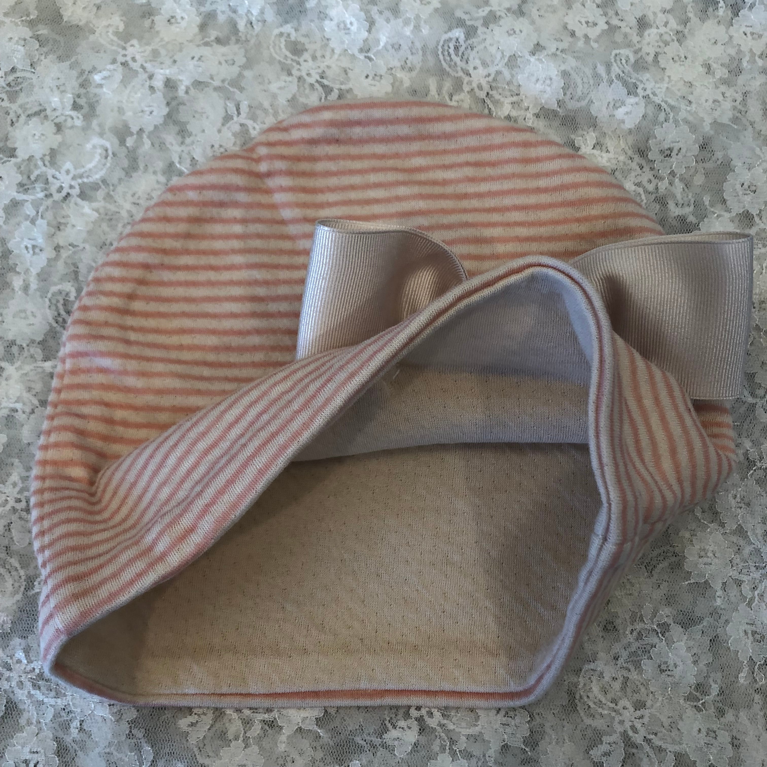 100%オーガニックコットンのケア帽子 ピンクボーダー