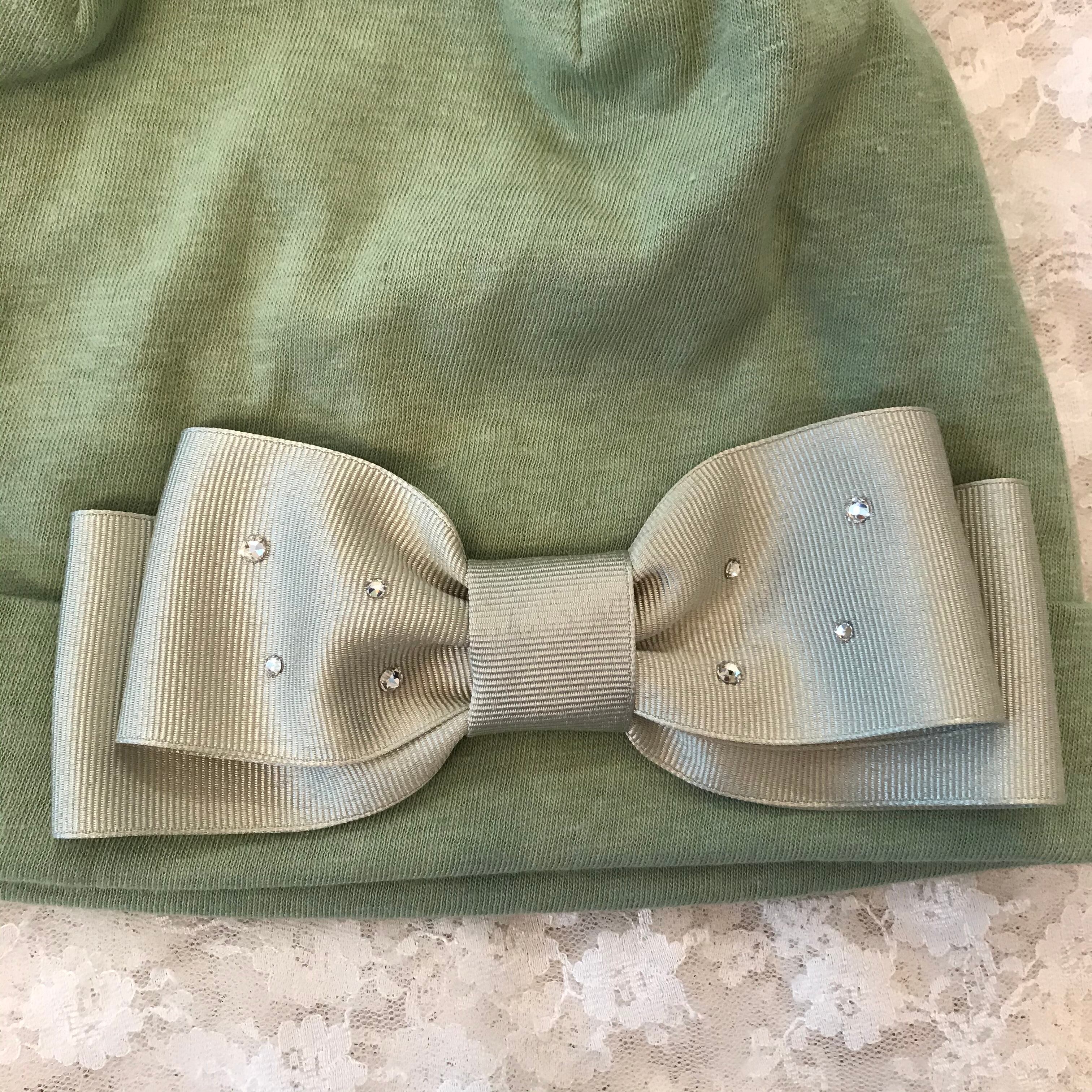 お生地の内側は優しい肌触りのコットンを使用したお帽子にスワロフスキー付きグログランリボンを付けた可愛いデザインです。
