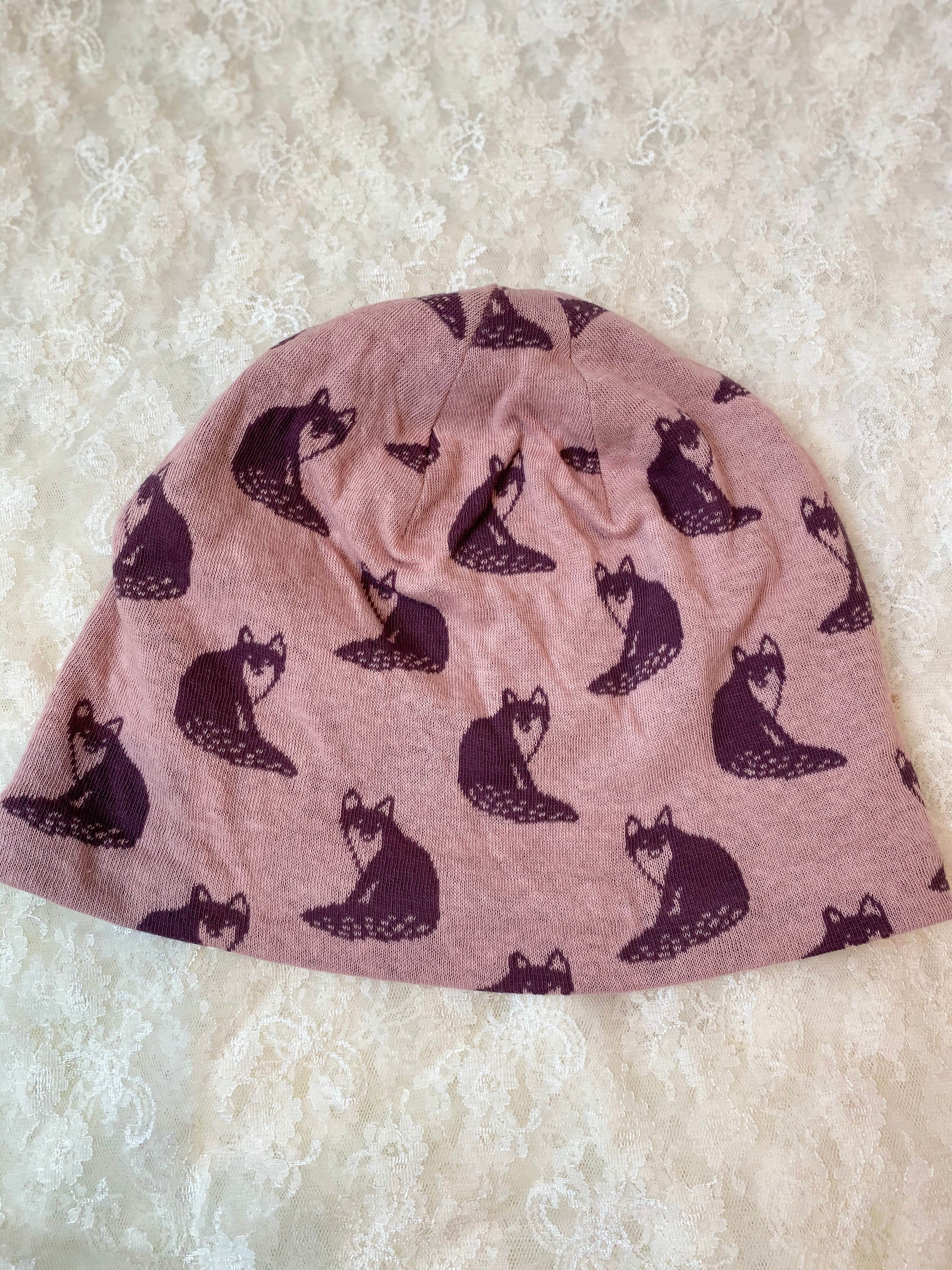 狐柄生地のケア帽子 ピンク系