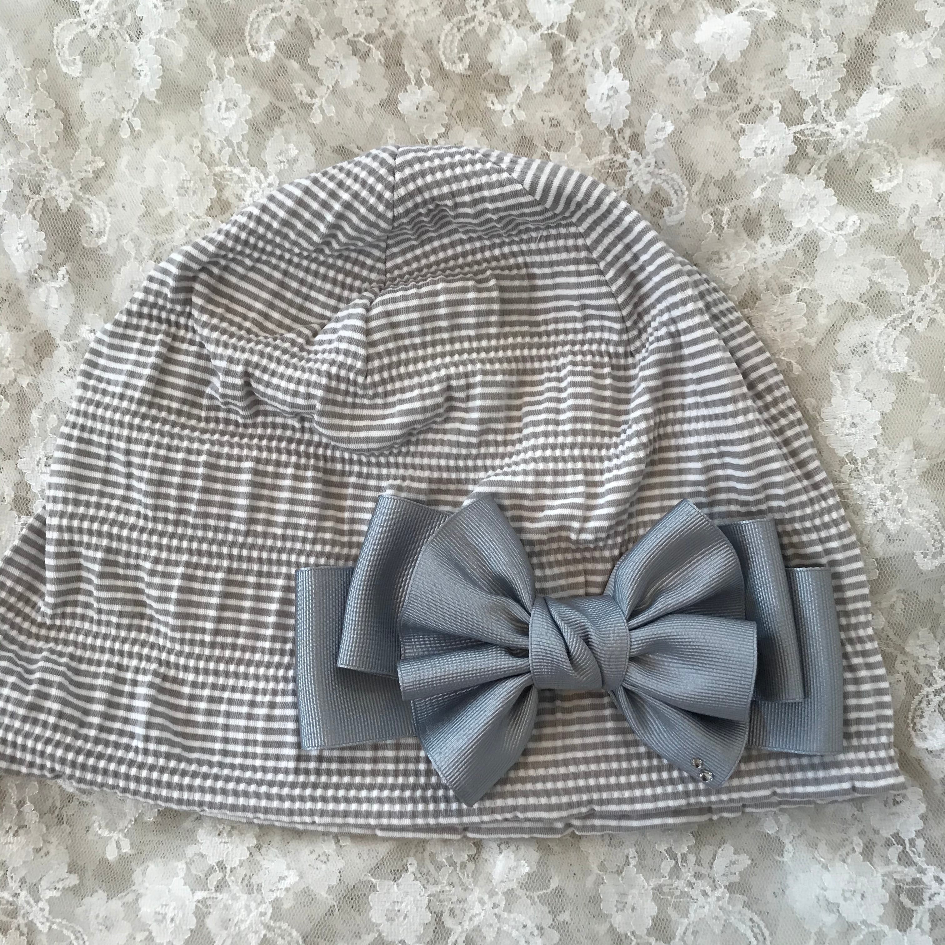 ☆ラスト1点☆スワロフスキー付きフリルリボンのケア帽子 シャーリング グレー