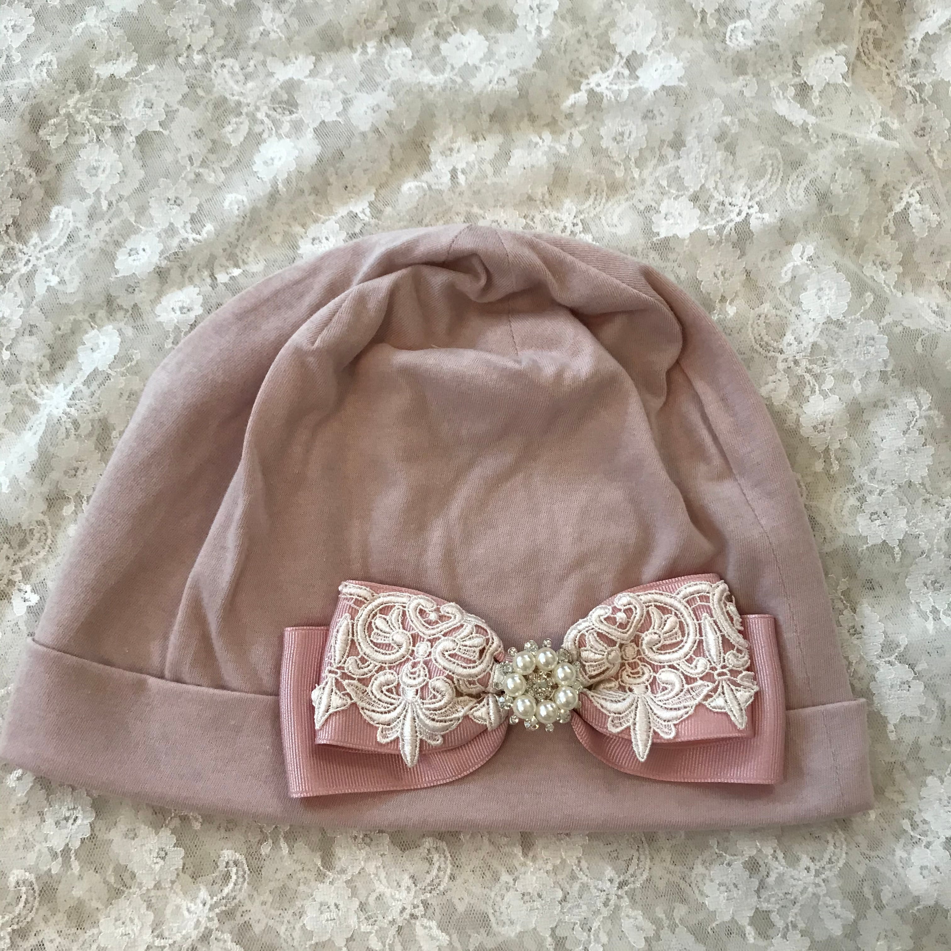 豪華レースとパールモチーフのケア帽子 ピンク4