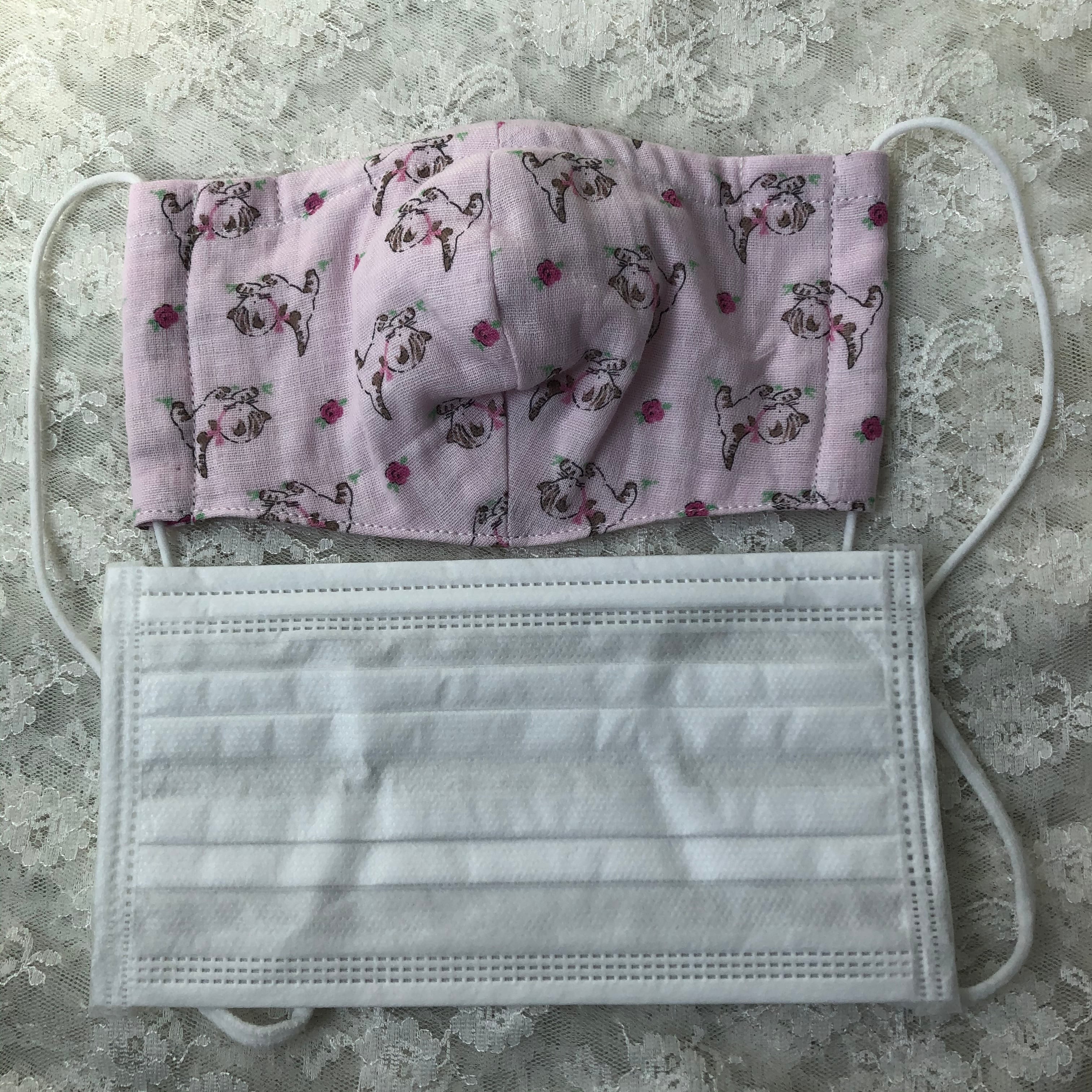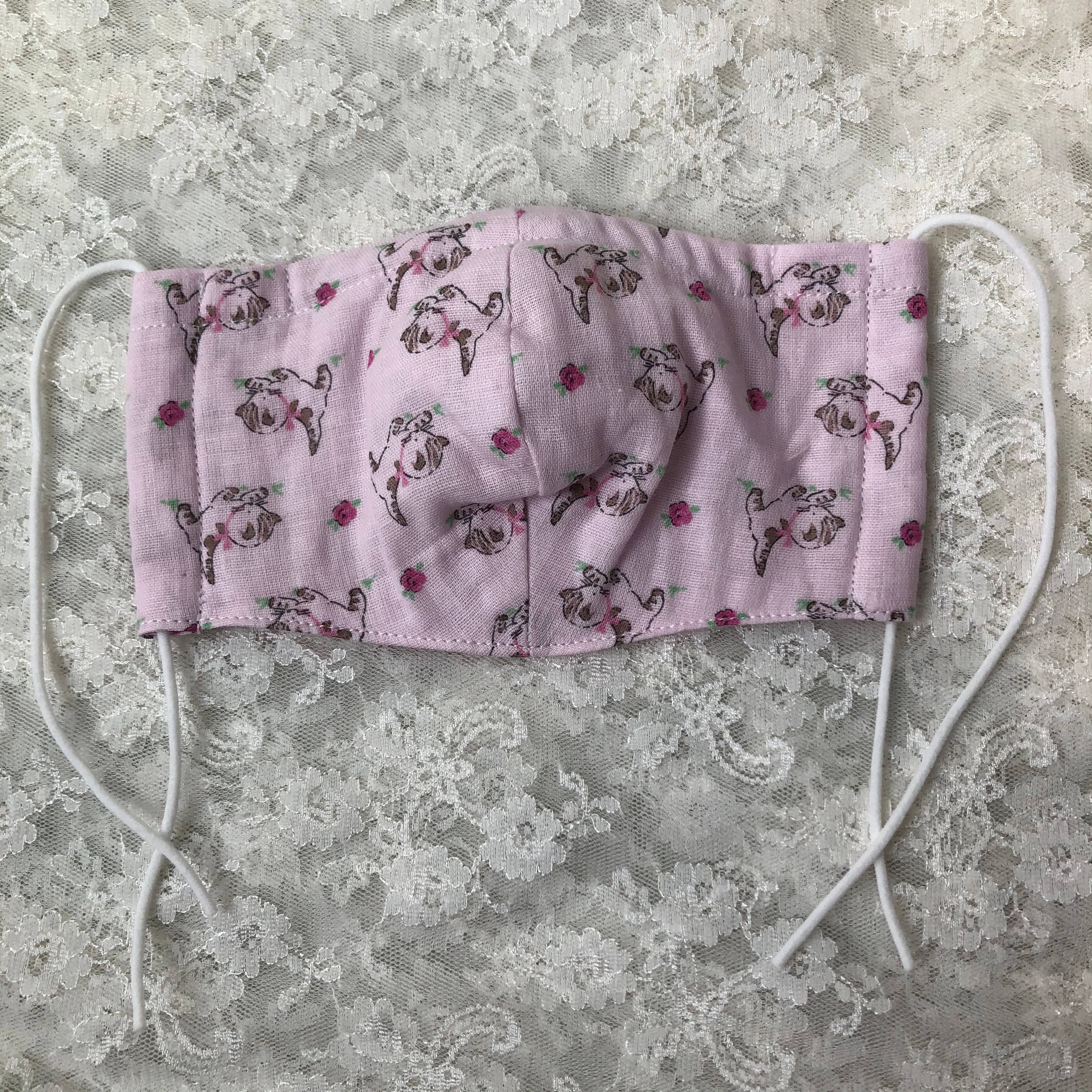 猫ちゃん柄の二重ガーゼを使い立体的に仕上げたマスクです。お鼻部分にはワイヤーが入っております。