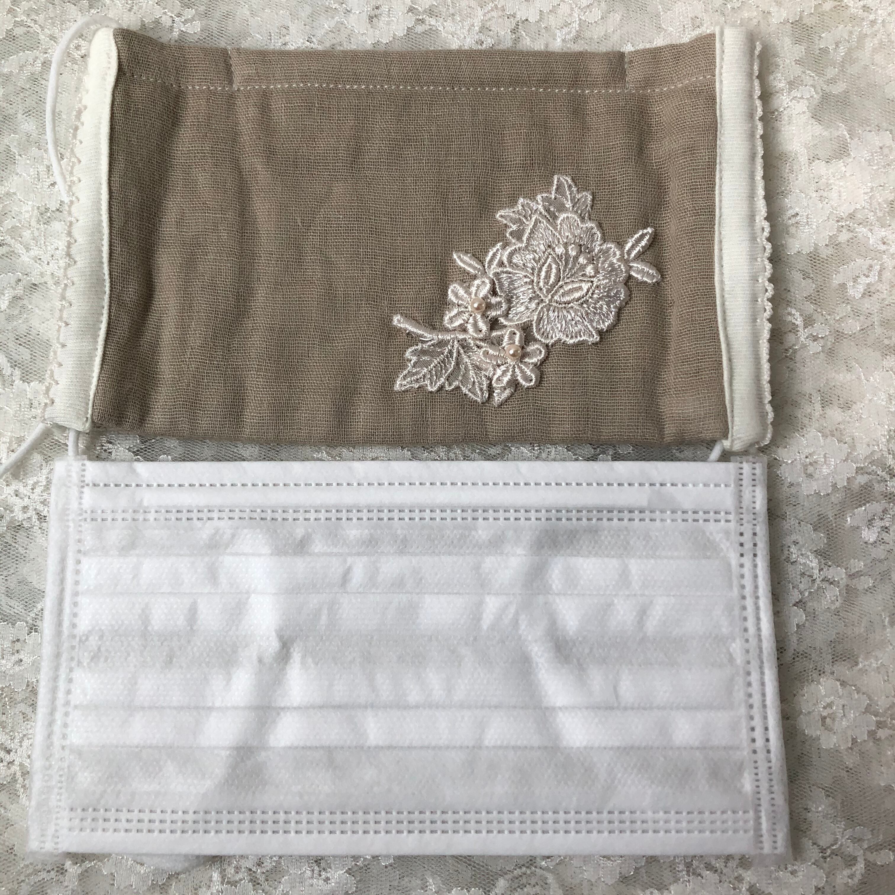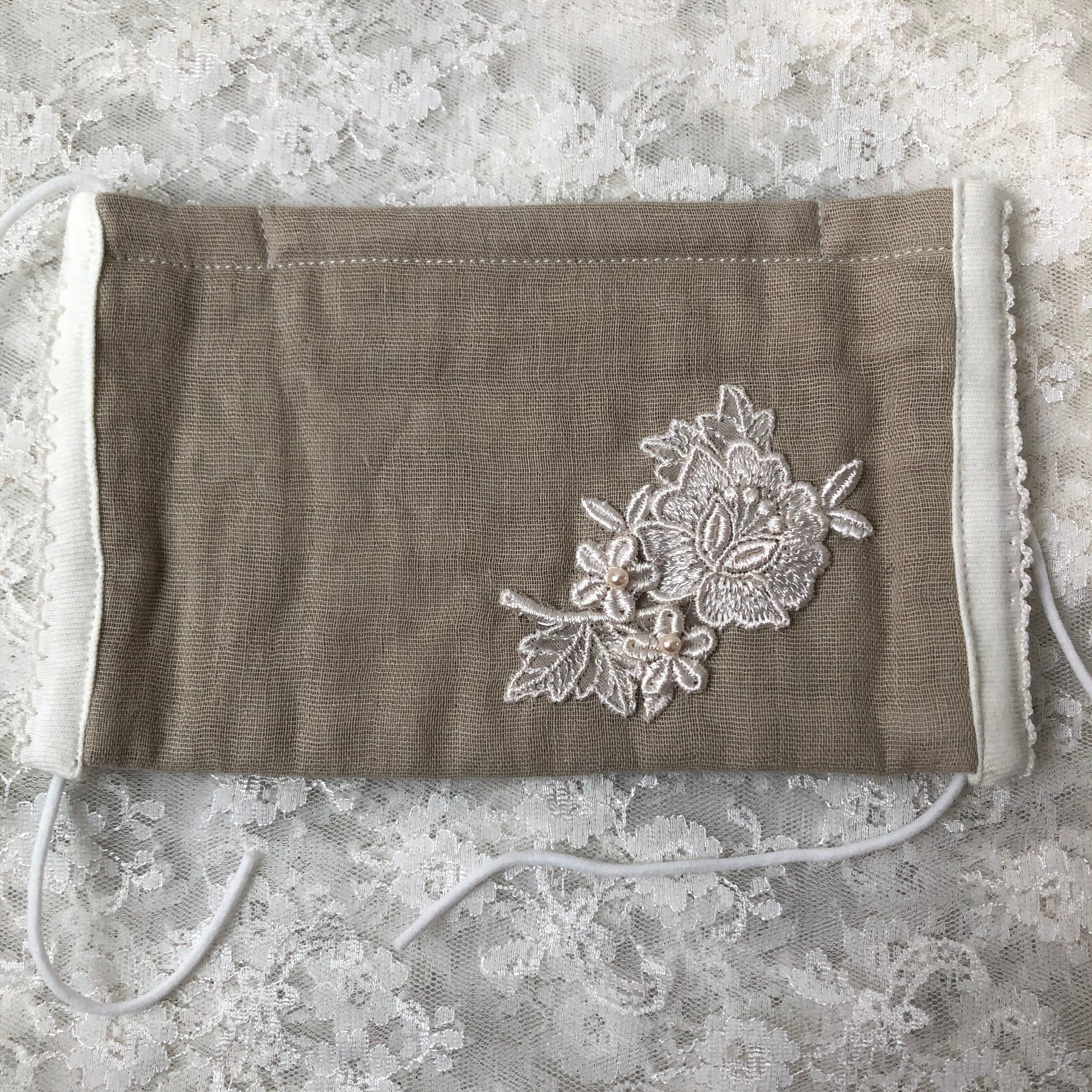 ノーズワイヤー付きマスク レースのお花 ベージュ
