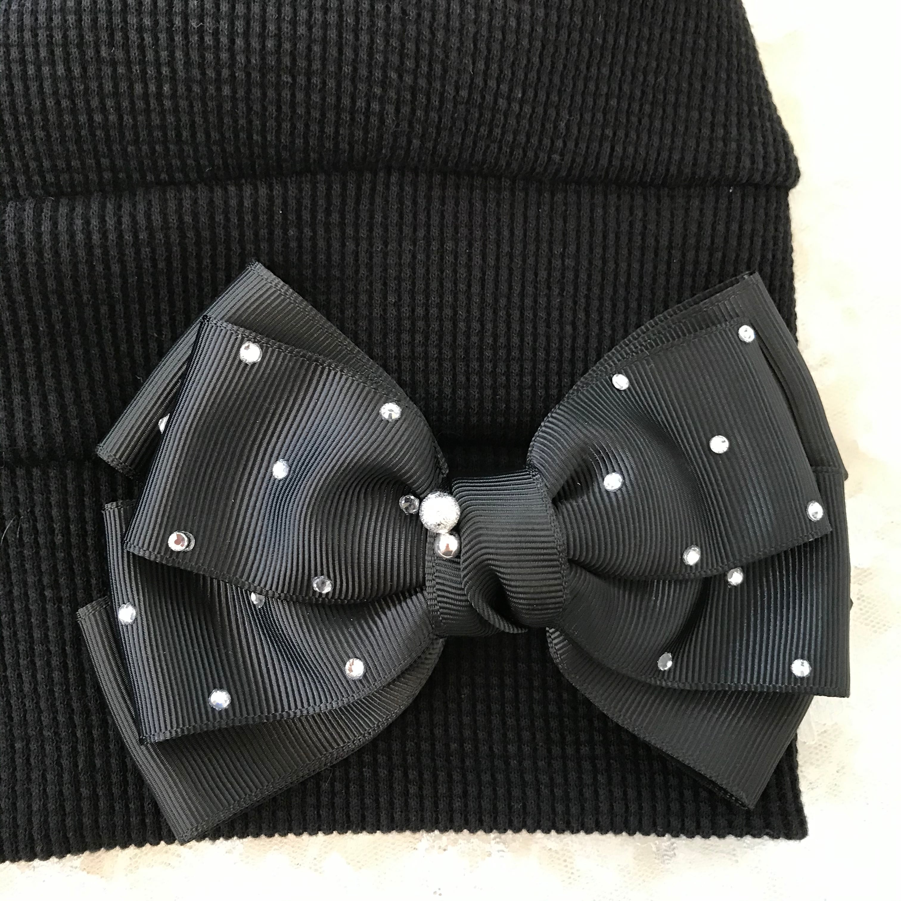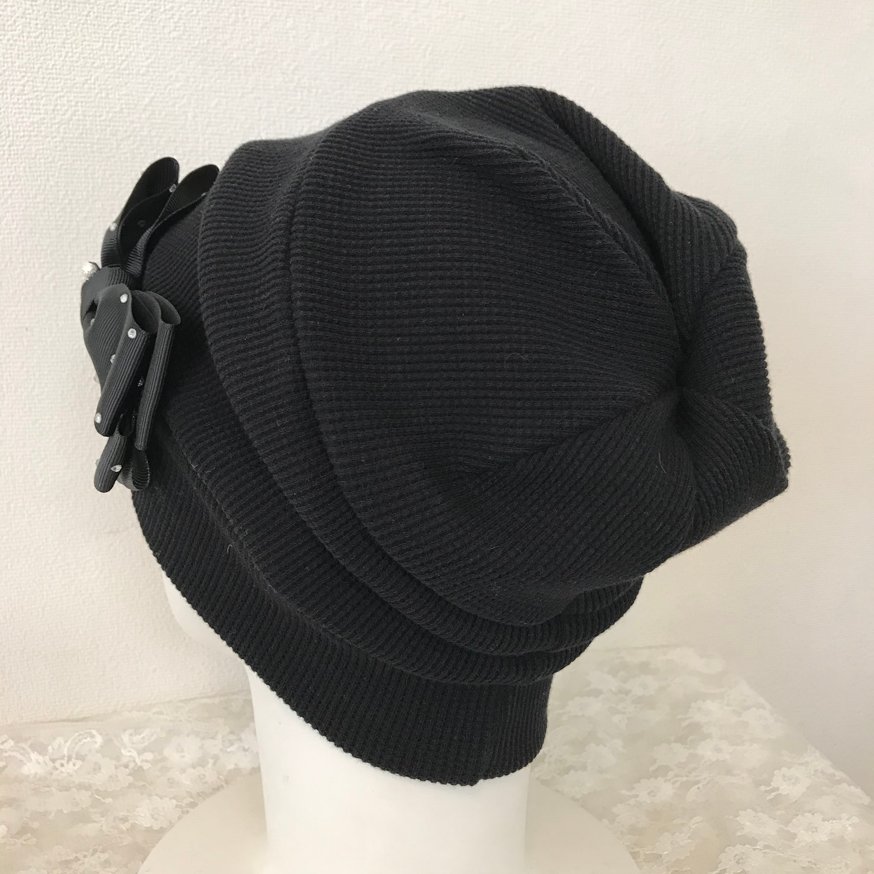 オーガニックコットン段々ワッチ キラキラボールとラインストーンリボン 黒