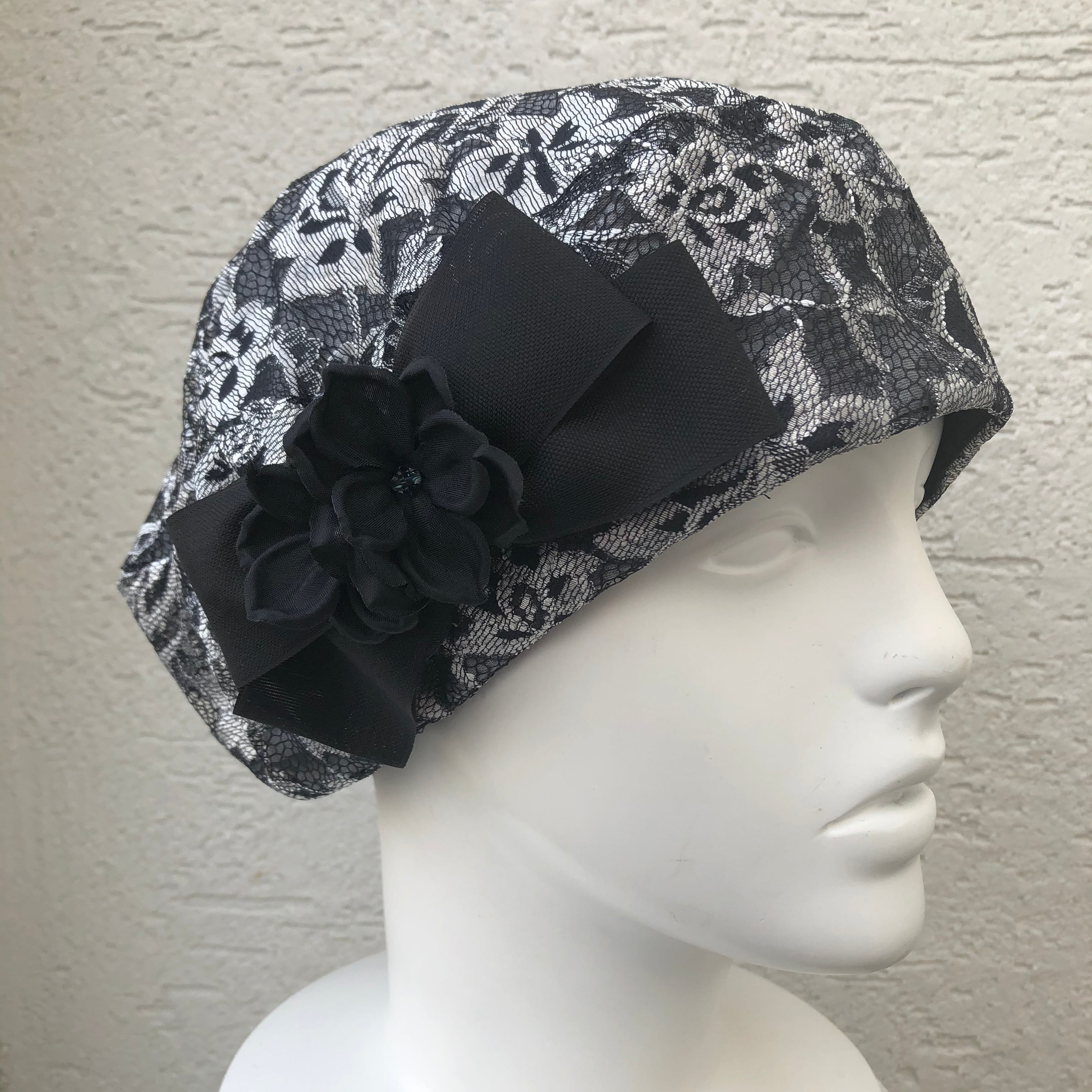 お生地たっぷりベレー帽 黒系レース