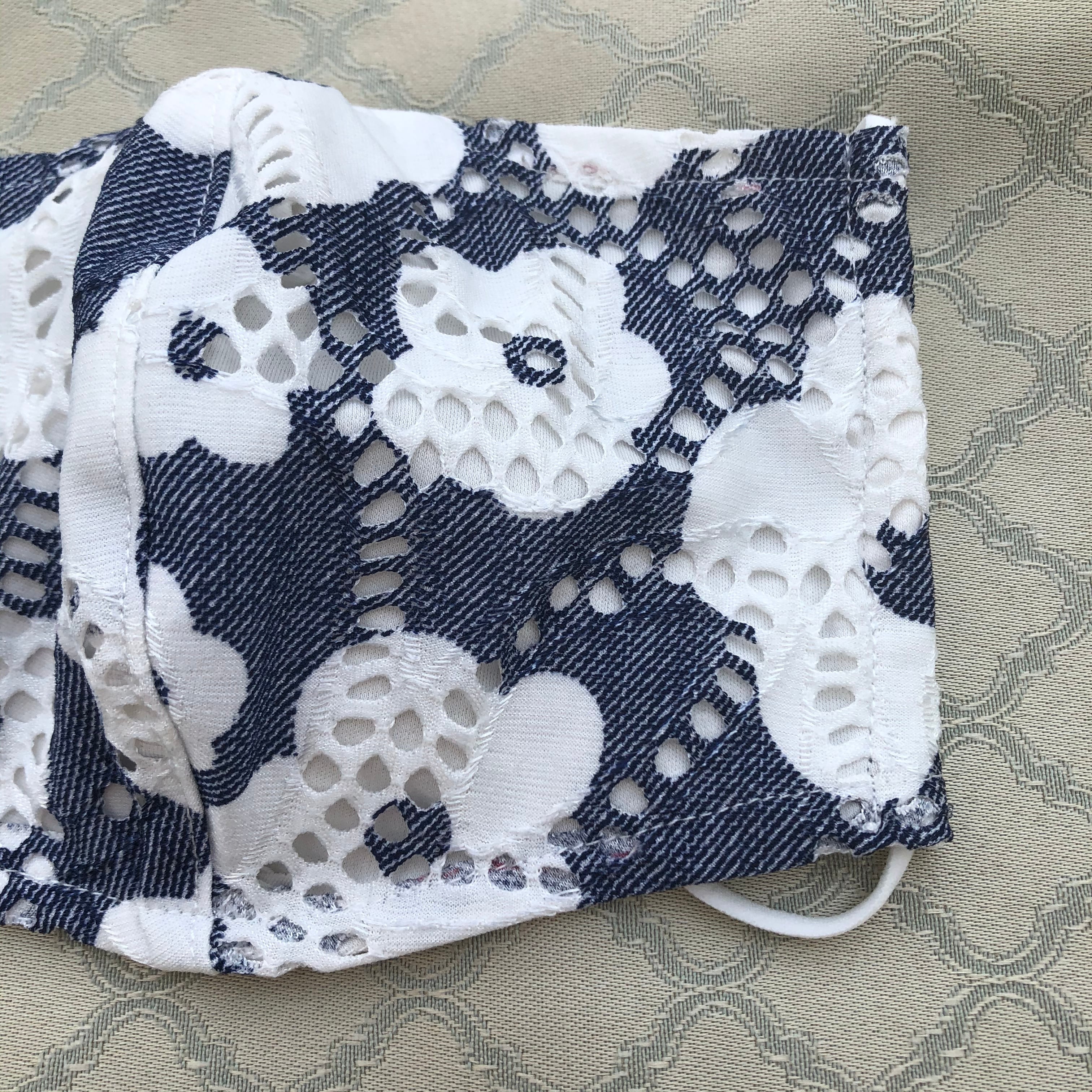 デニム風レースマスク 内側コットンホワイト