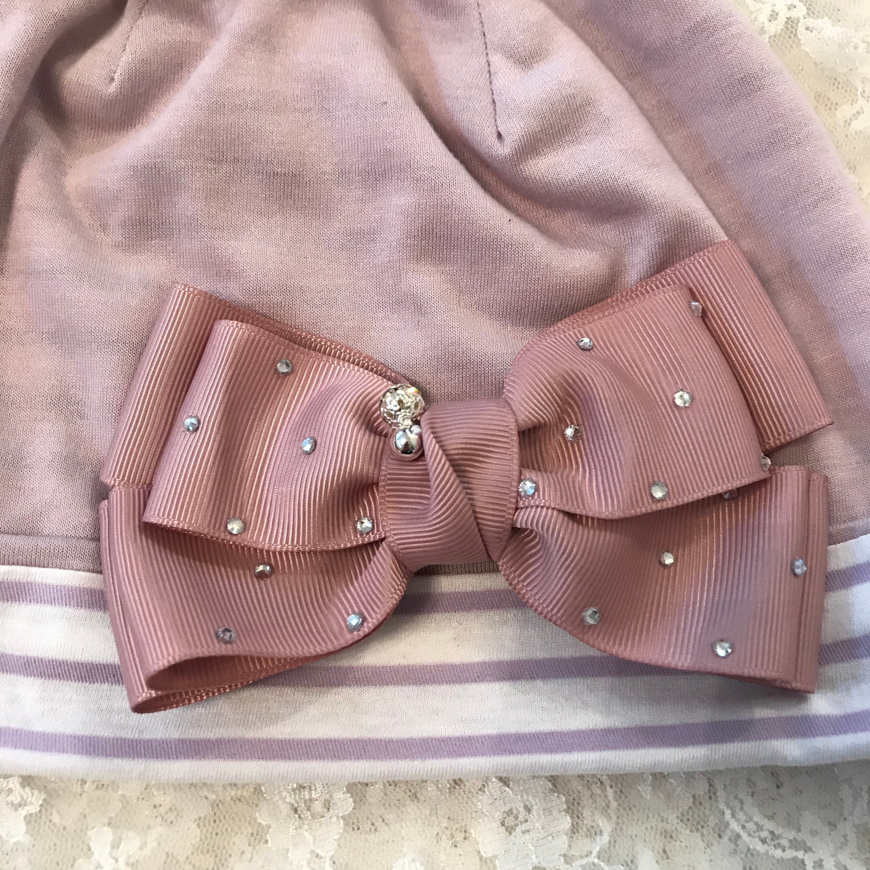 そのお帽子にキラキラボール付きラインストーンリボンを付けた素敵なデザインです。