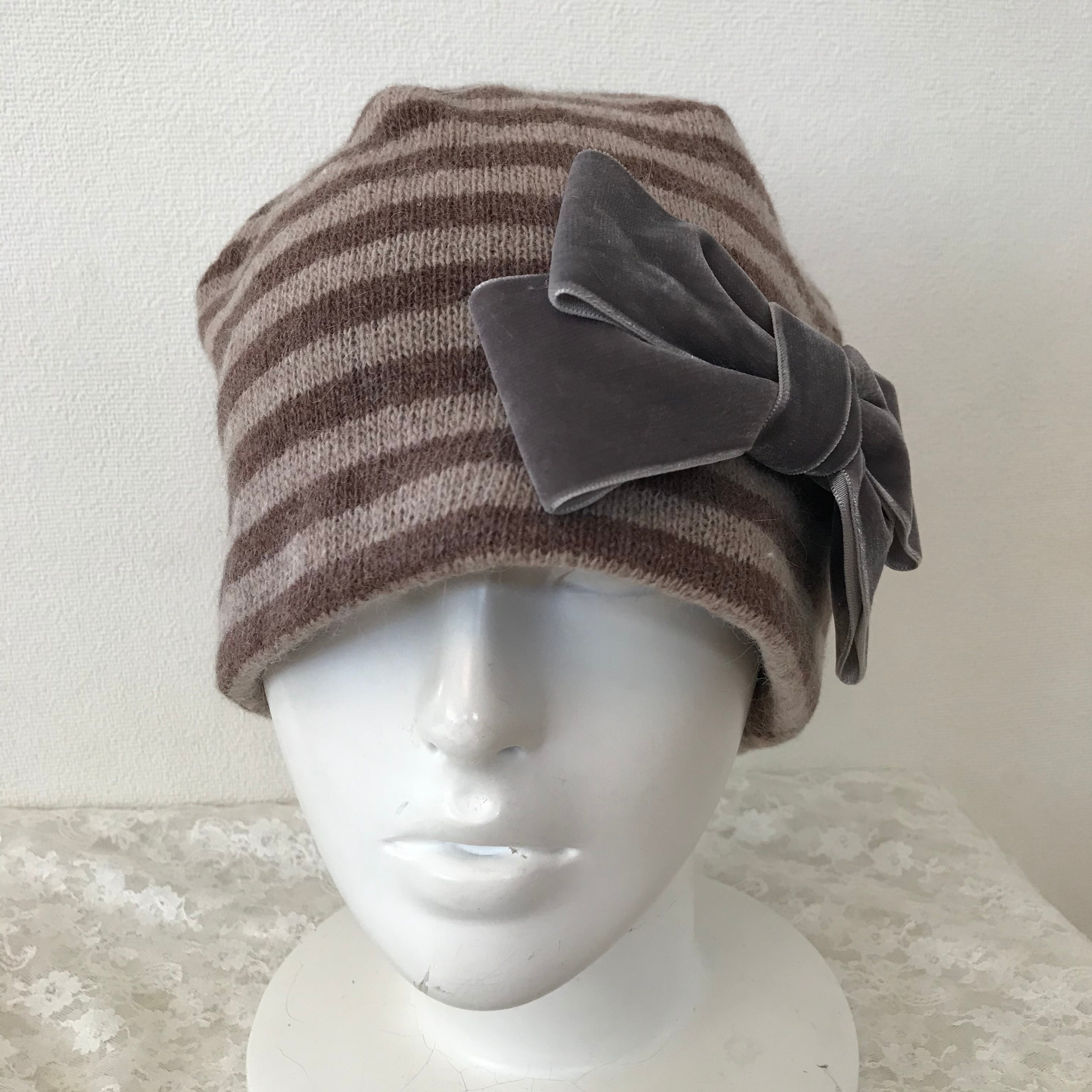 そのお帽子ベルベットリボンを付けた可愛いデザインです。