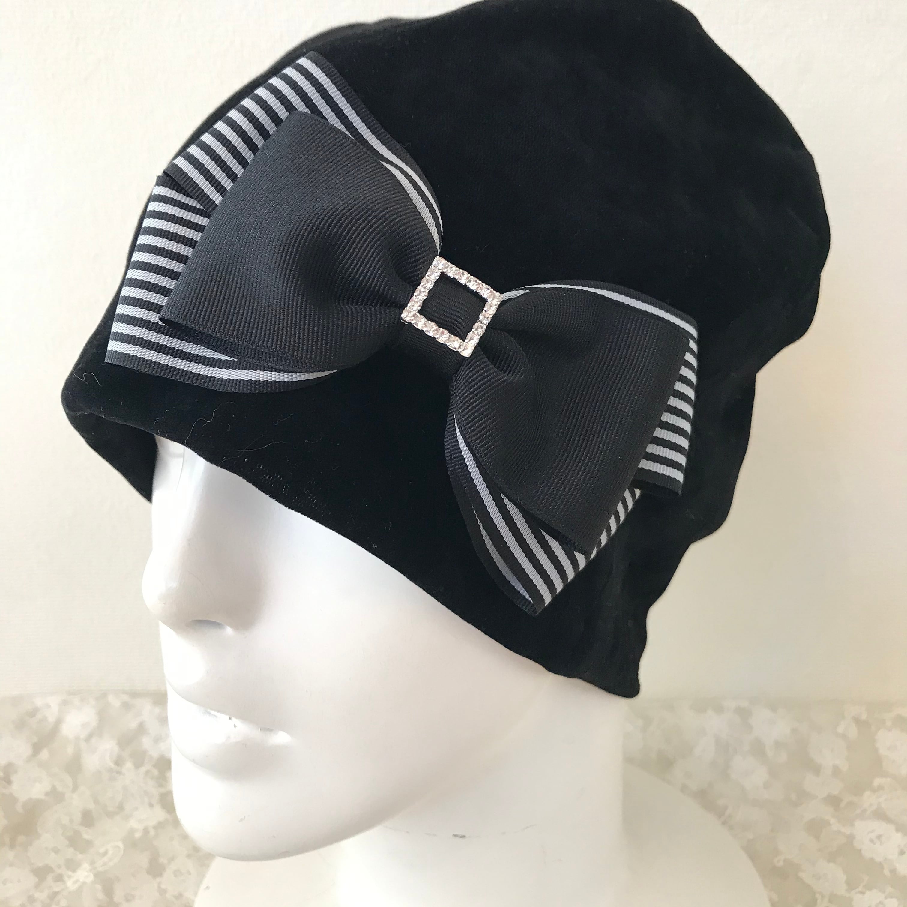 キラキラバックル付きリボンのケア帽子 ベロア黒