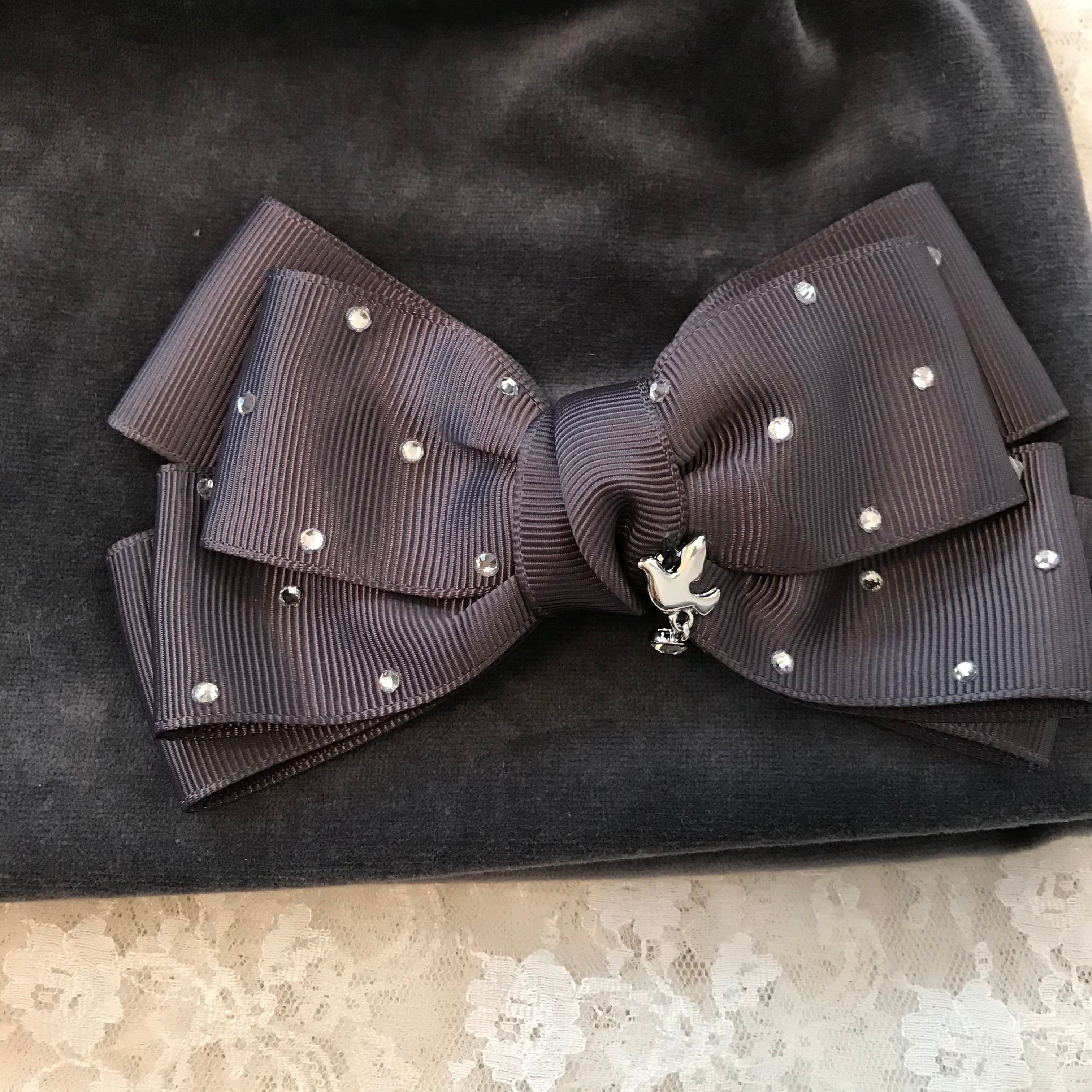 ビジュー付きチャームとラインストーンリボンのケア帽子 グレー ベロア
