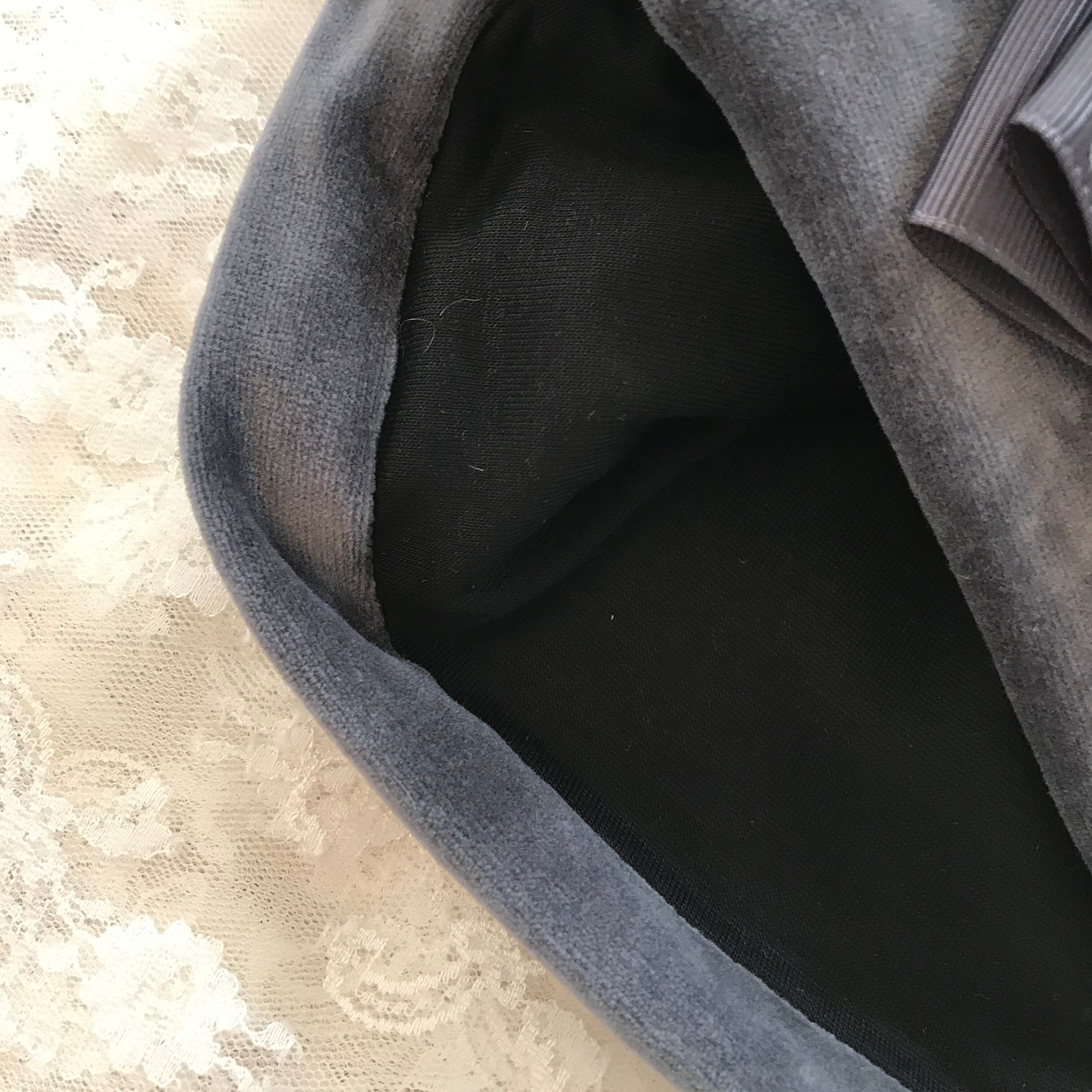 ベロア生地の内側は優しい肌触りのコットンを使用したお帽子にビジュー付きチャームとラインストーン付きグログランリボンを付けた可愛いデザインです。