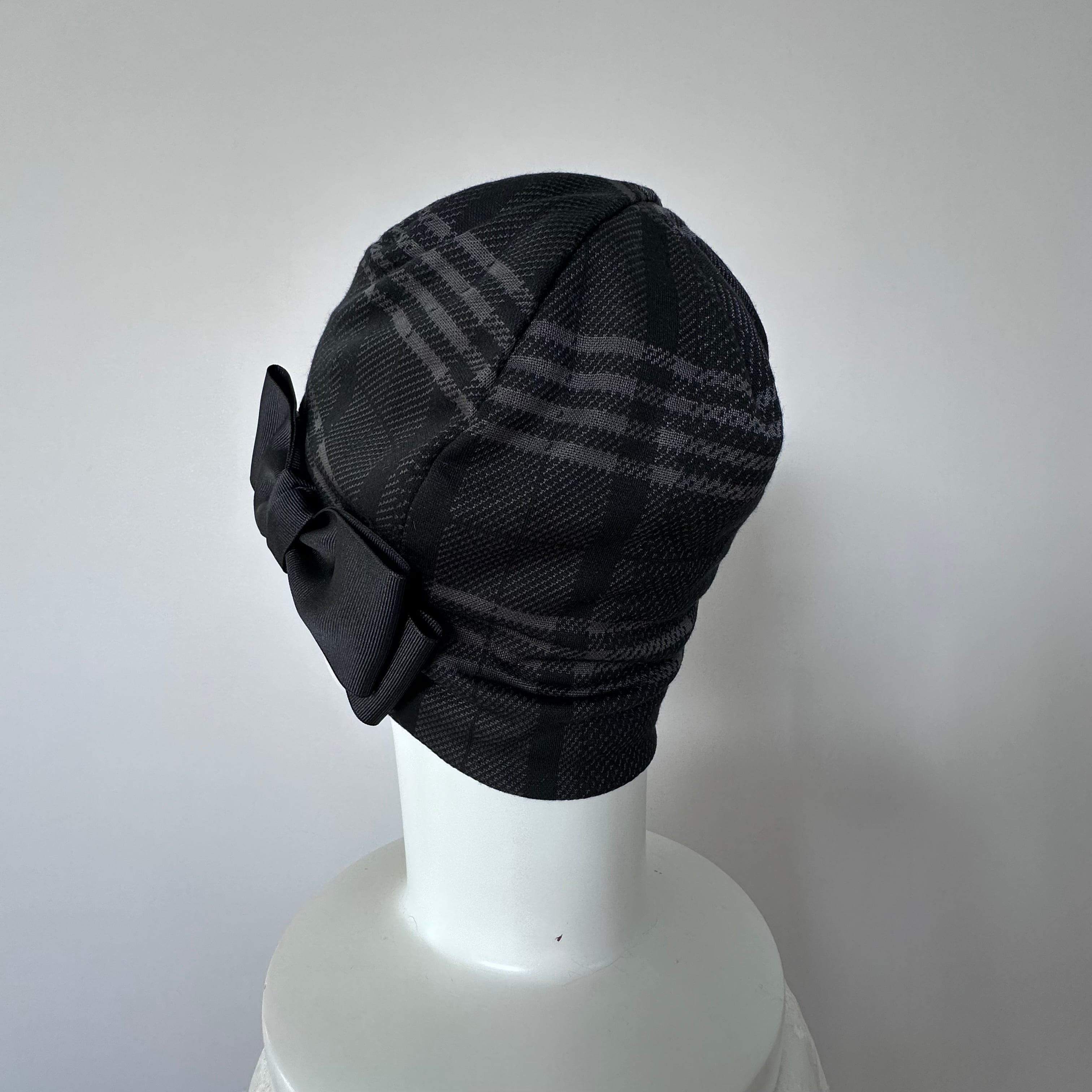 肌触りの良い、伸縮性のあるお生地で作ったお帽子に、おリボンを付けた素敵なデザインです。