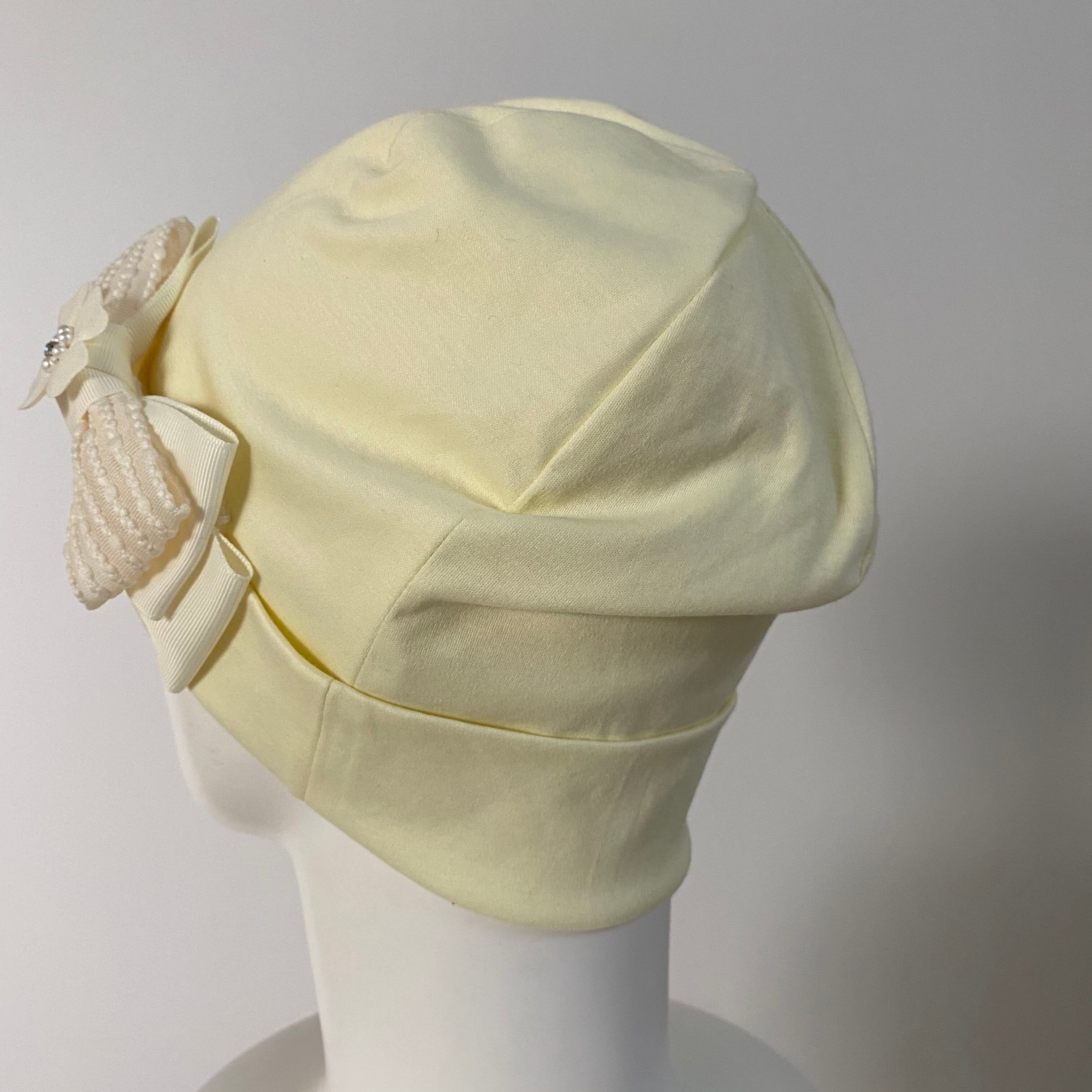 ポップコーンリボンとお花のケア帽子クリームイエロー