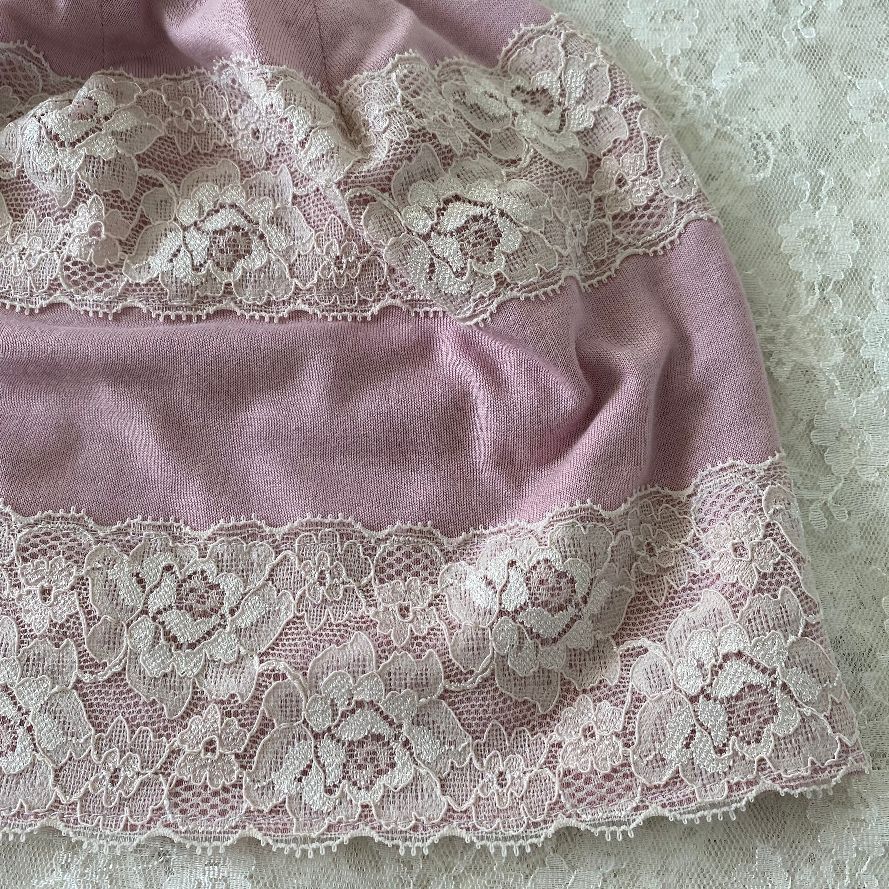 クールマックス生地で作ったお帽子に、レースを付けた上品なデザインです。