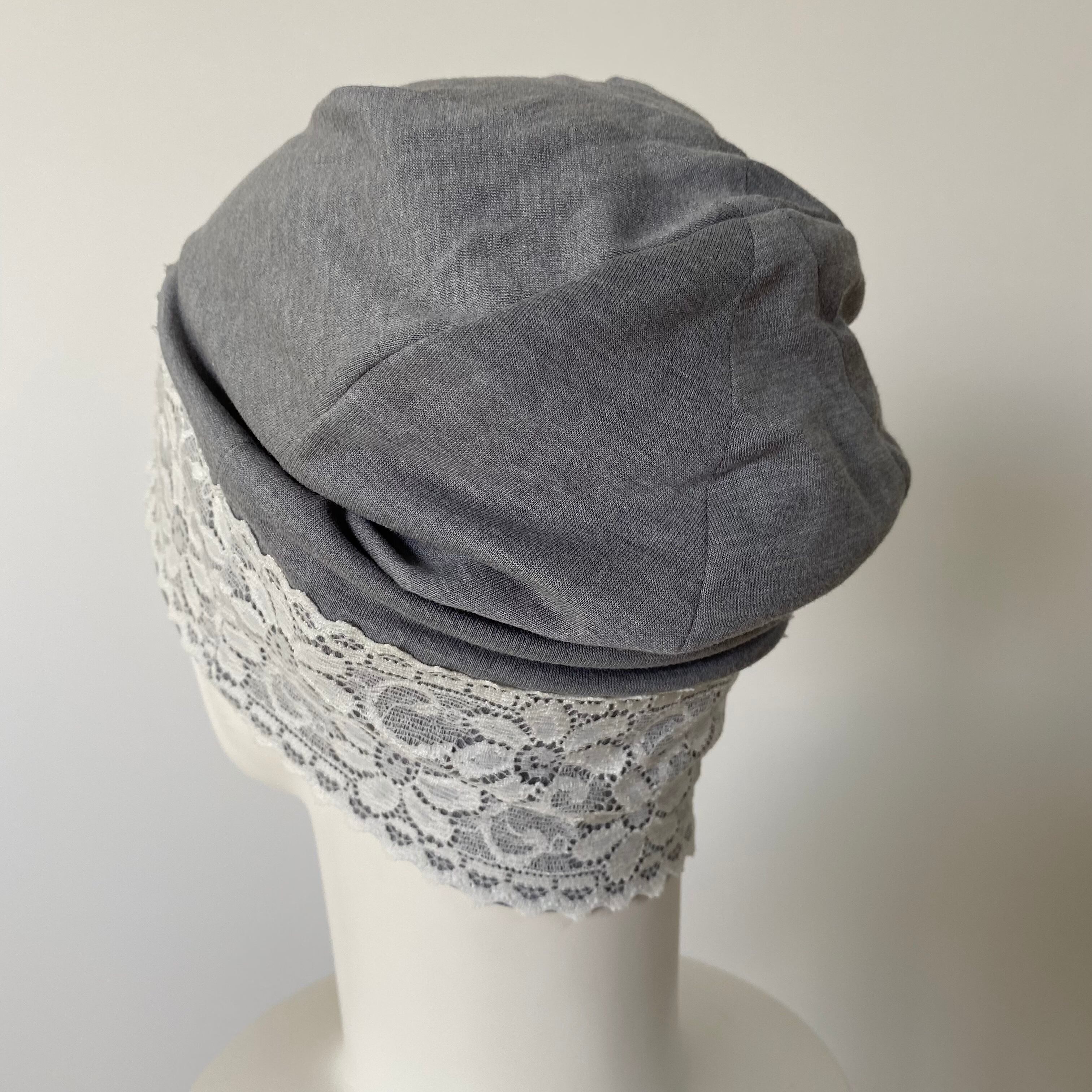 クールマックス生地のケア帽子 グレー ホワイトレース