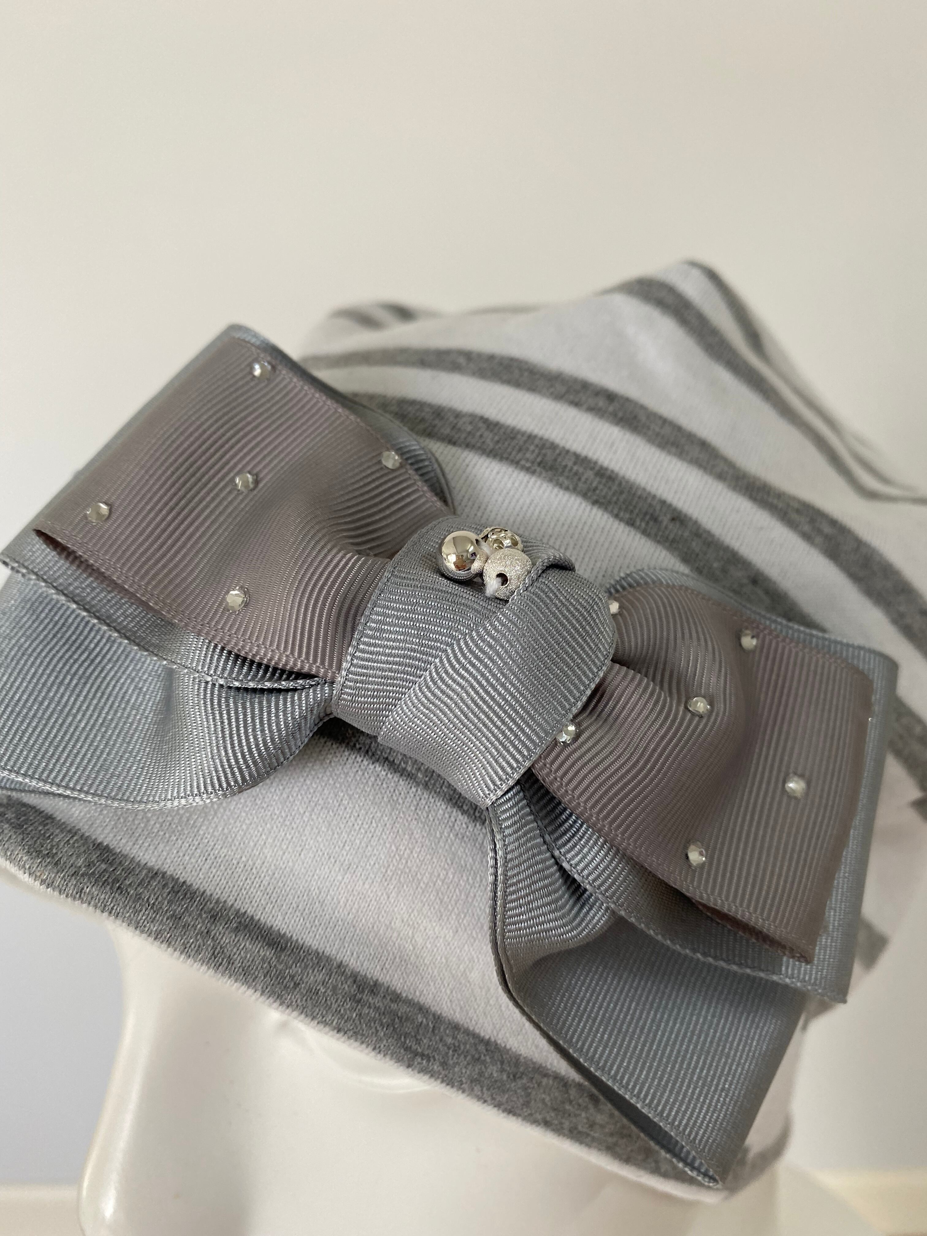 内側クールマックス生地のケア帽子 ラインストーンリボン グレー