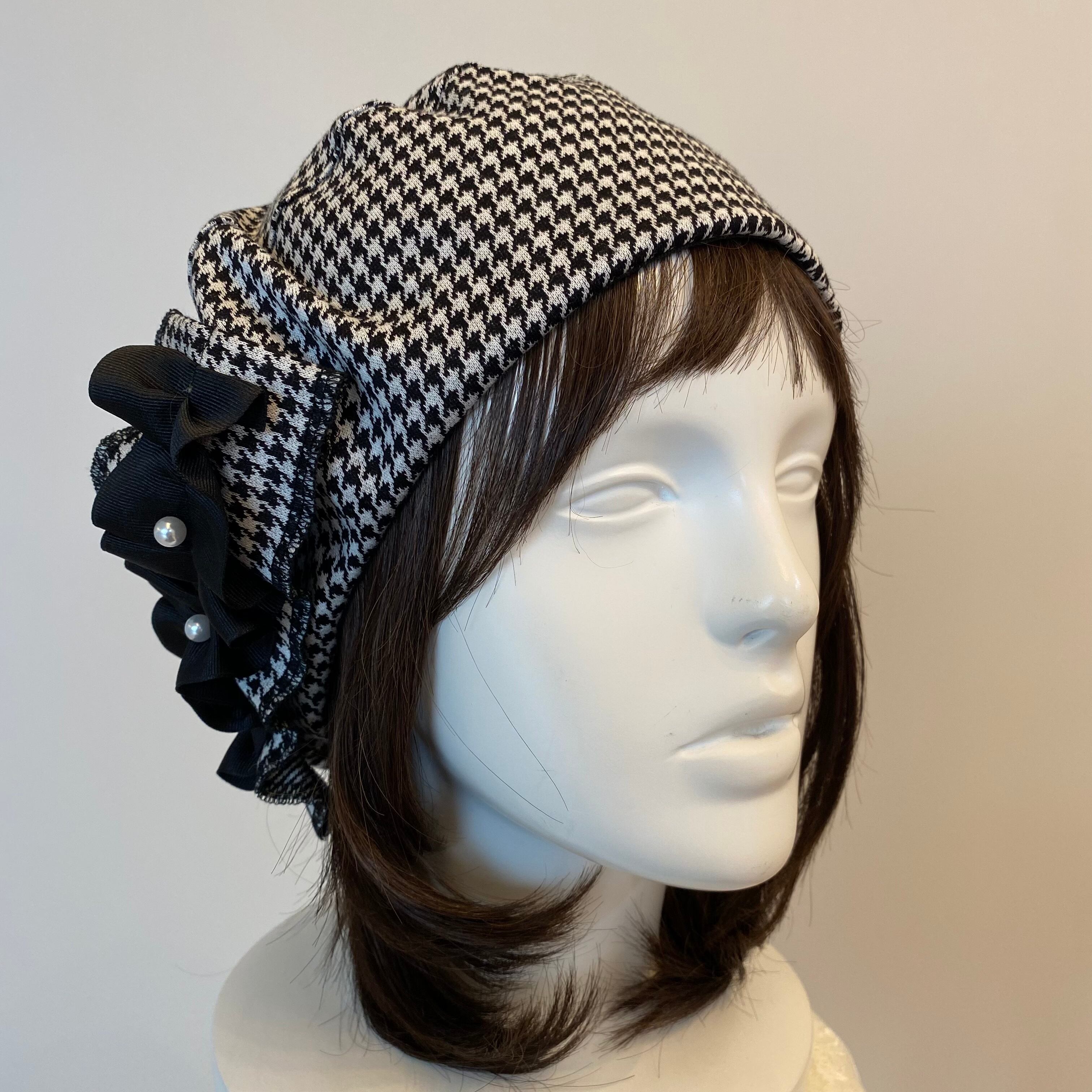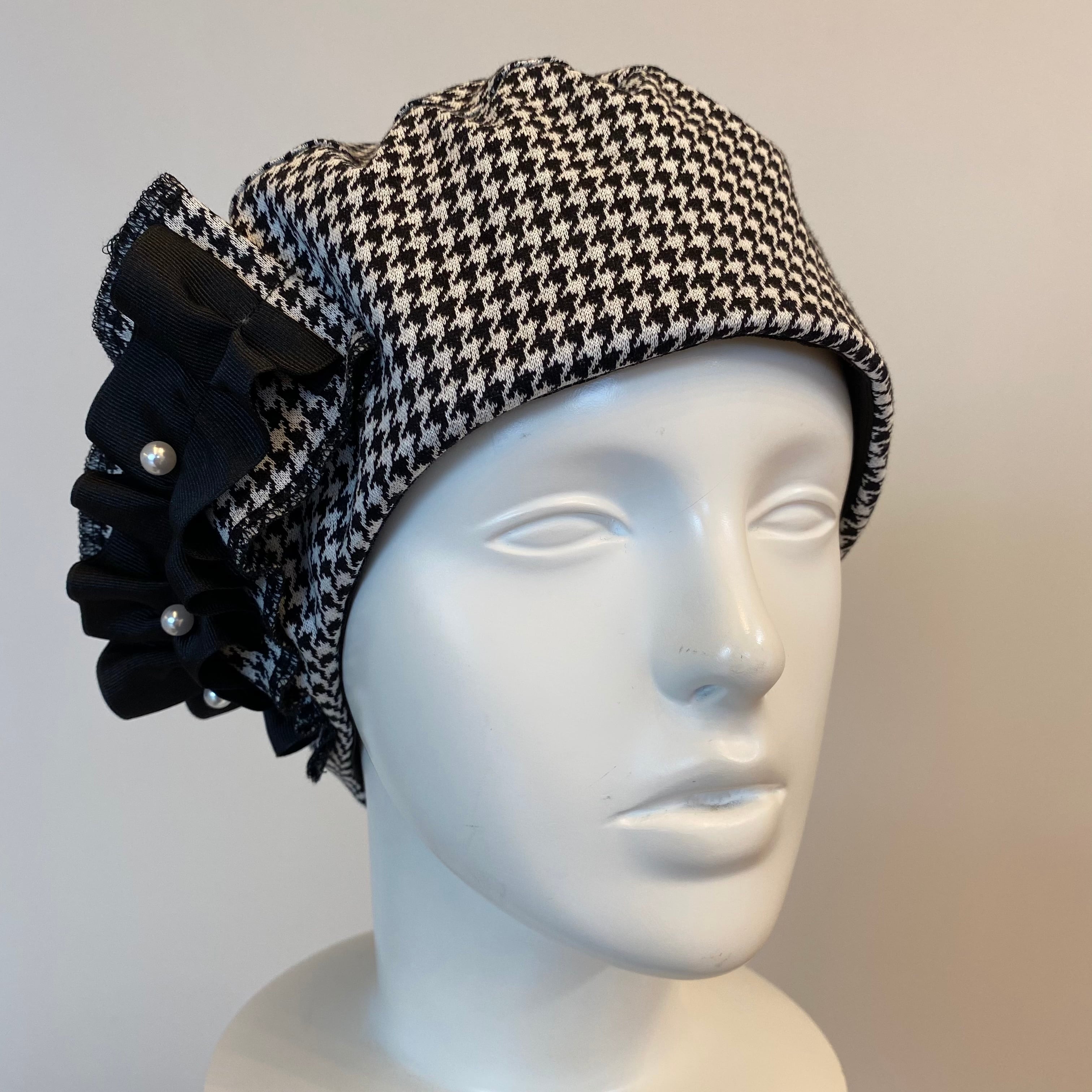 千鳥格子生地をたっぷり使ったベレー帽です。