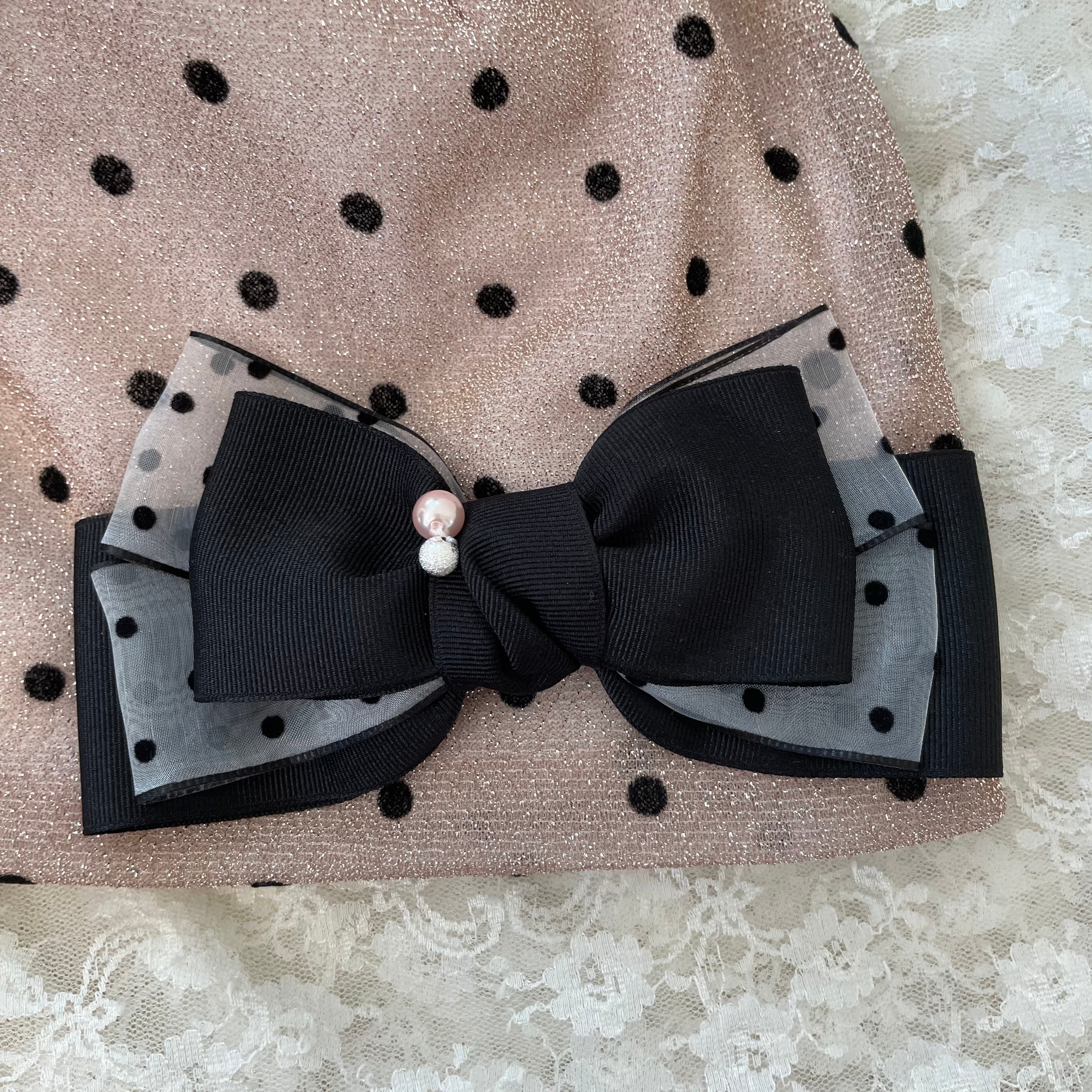パール付きチュールリボンとグログランリボンを付けた素敵なデザインです。