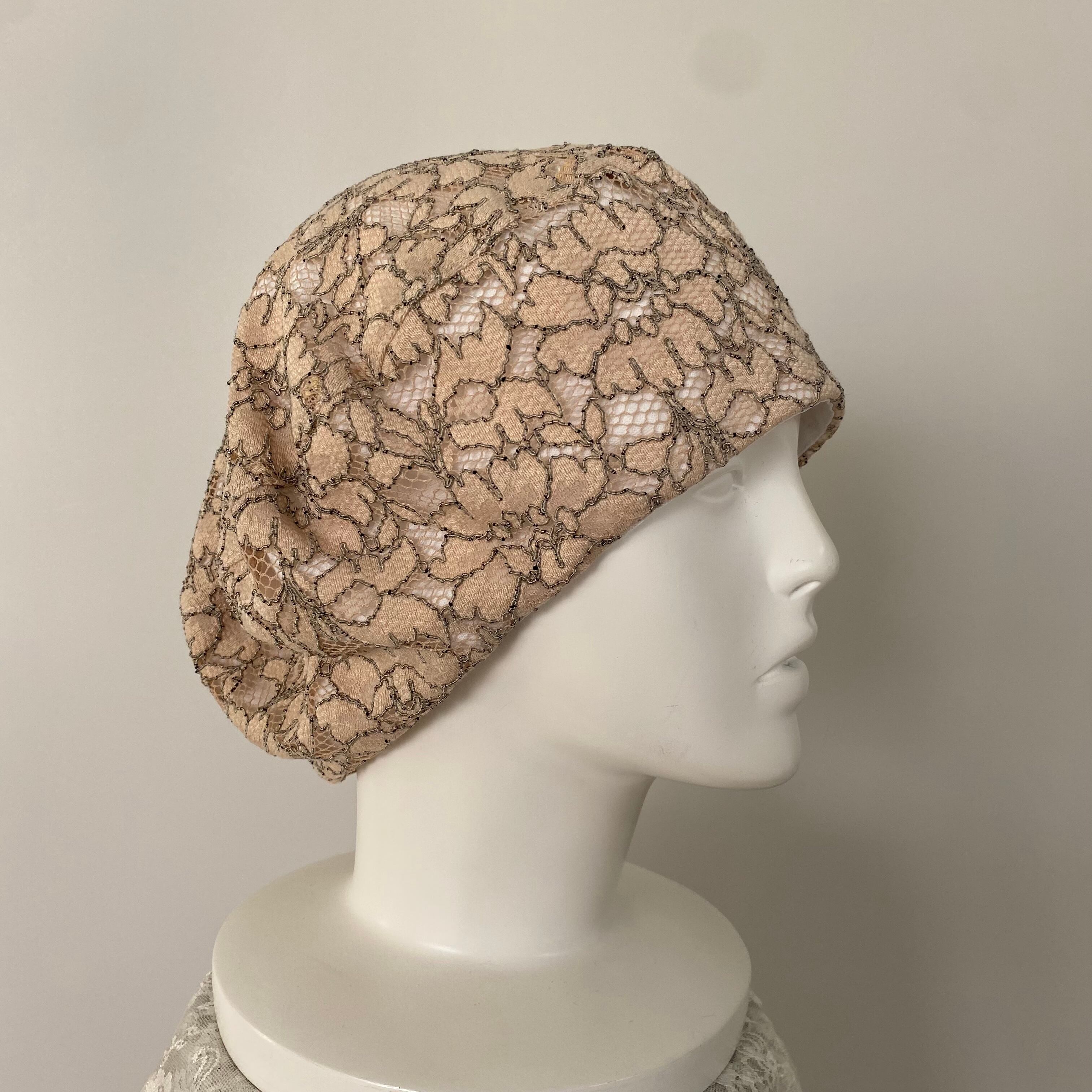 お生地たっぷりベレー帽 ベージュレース