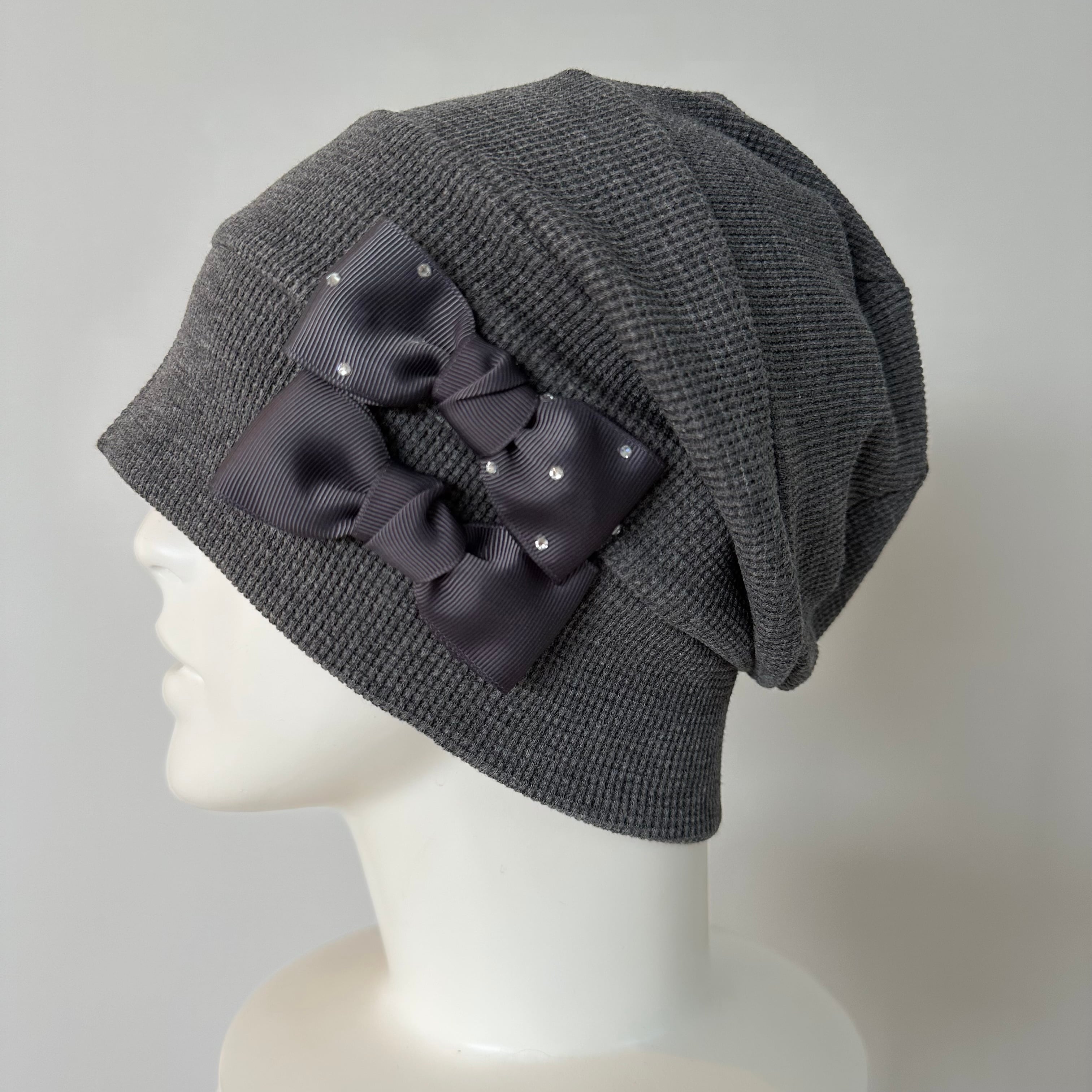 オーガニックコットン段々ワッチ チャコールグレーダブルリボンリボン