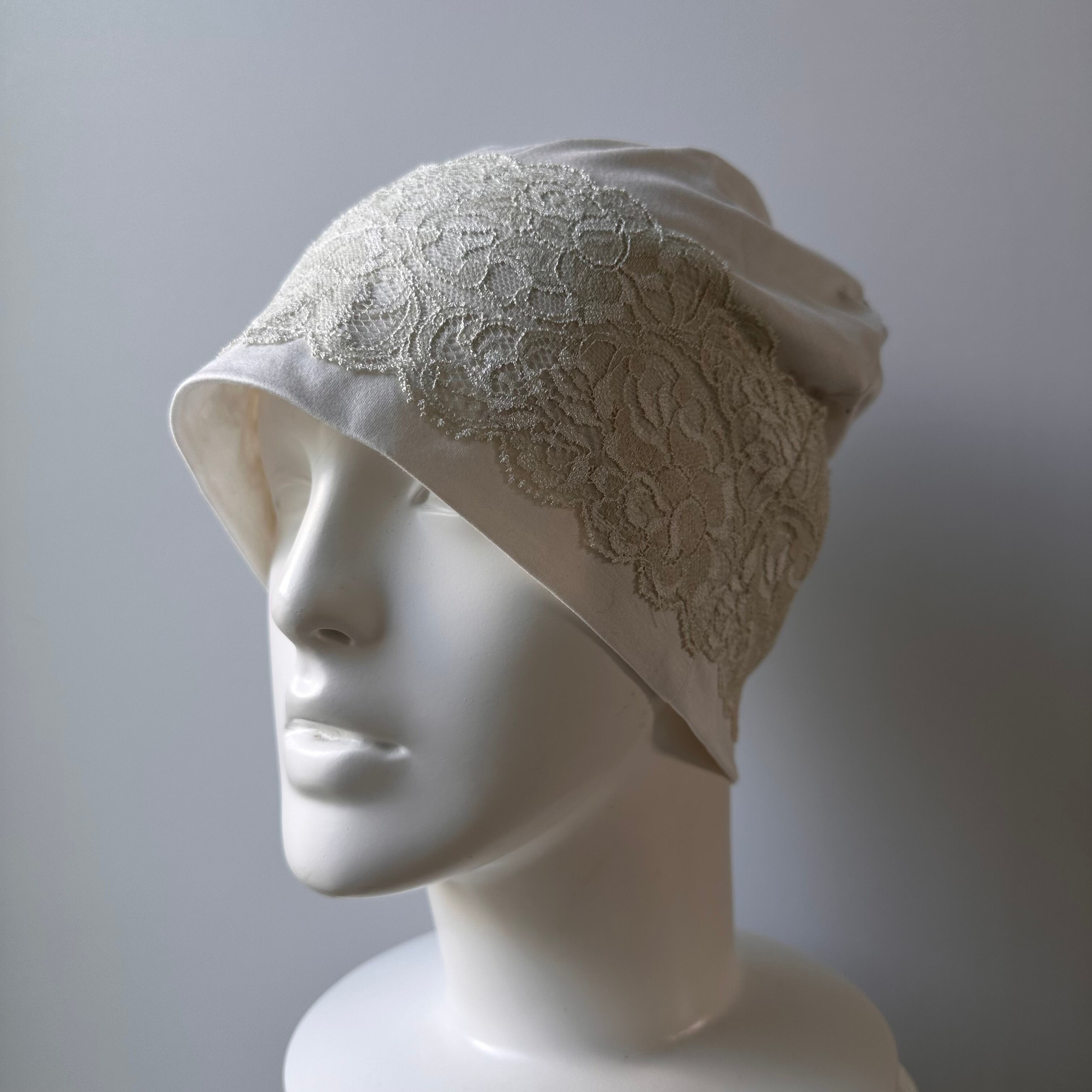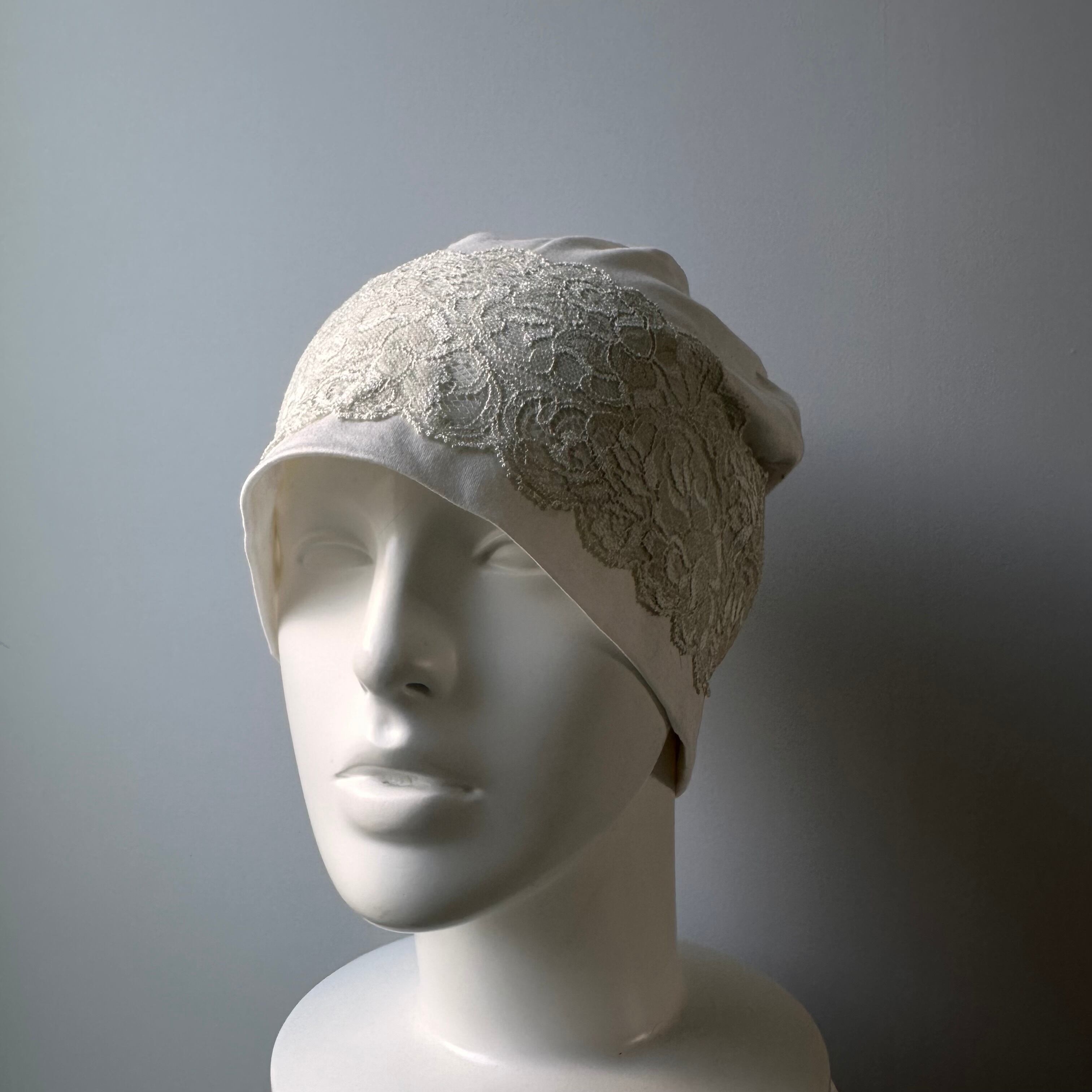 接触冷感生地で作ったお帽子に、レースを付けた上品なデザインです。