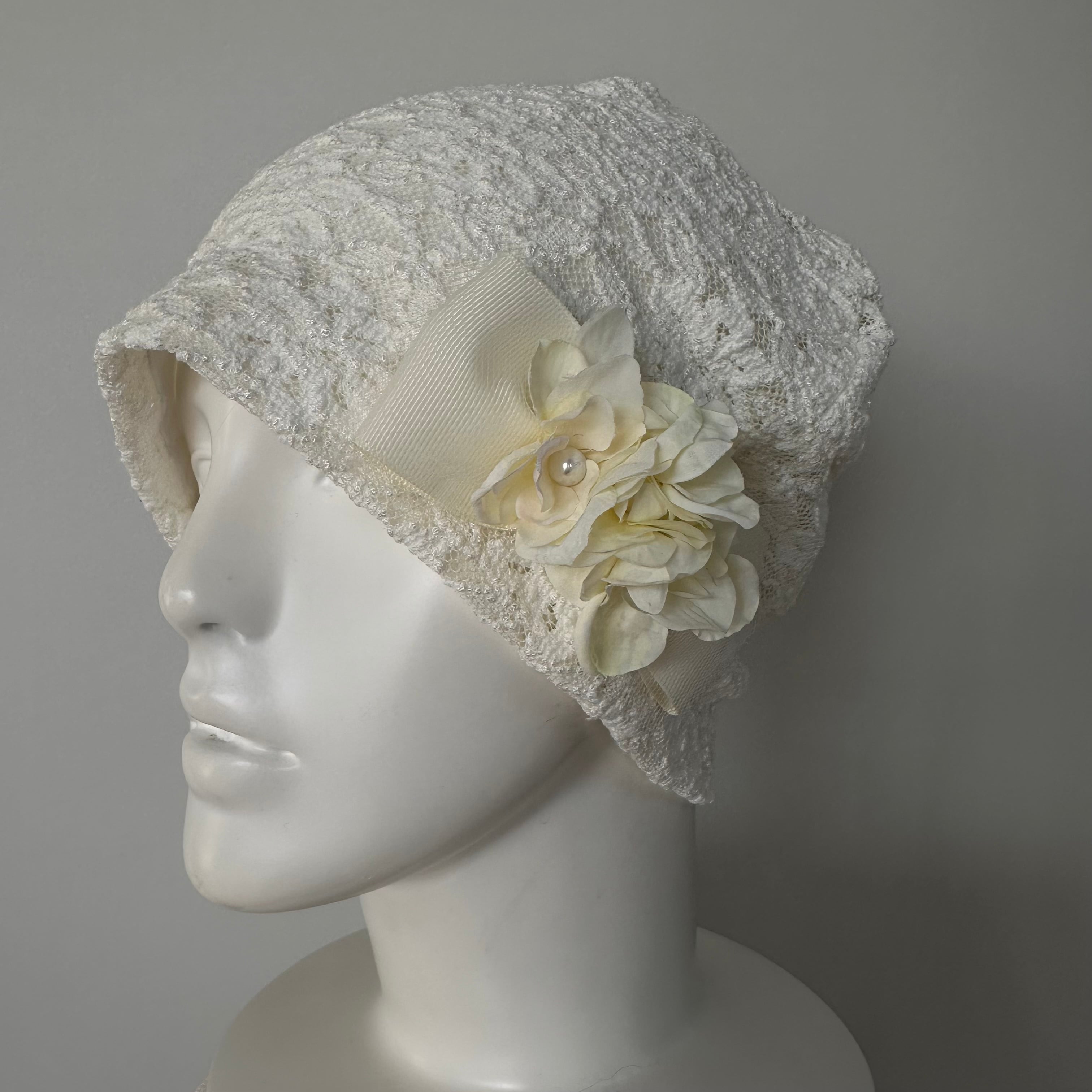 そのお帽子にお花付きリボンを付けた素敵なデザインです。